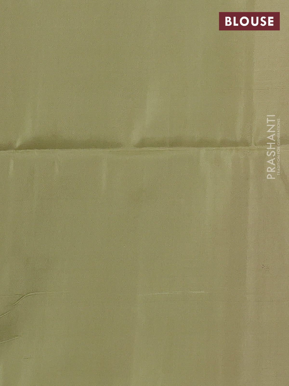 Kanchipuram soft silk saree red and pista green with zari woven buttas in borderless style