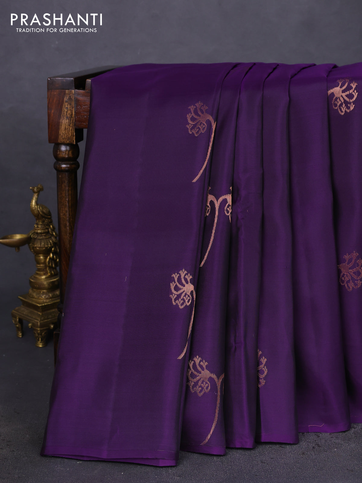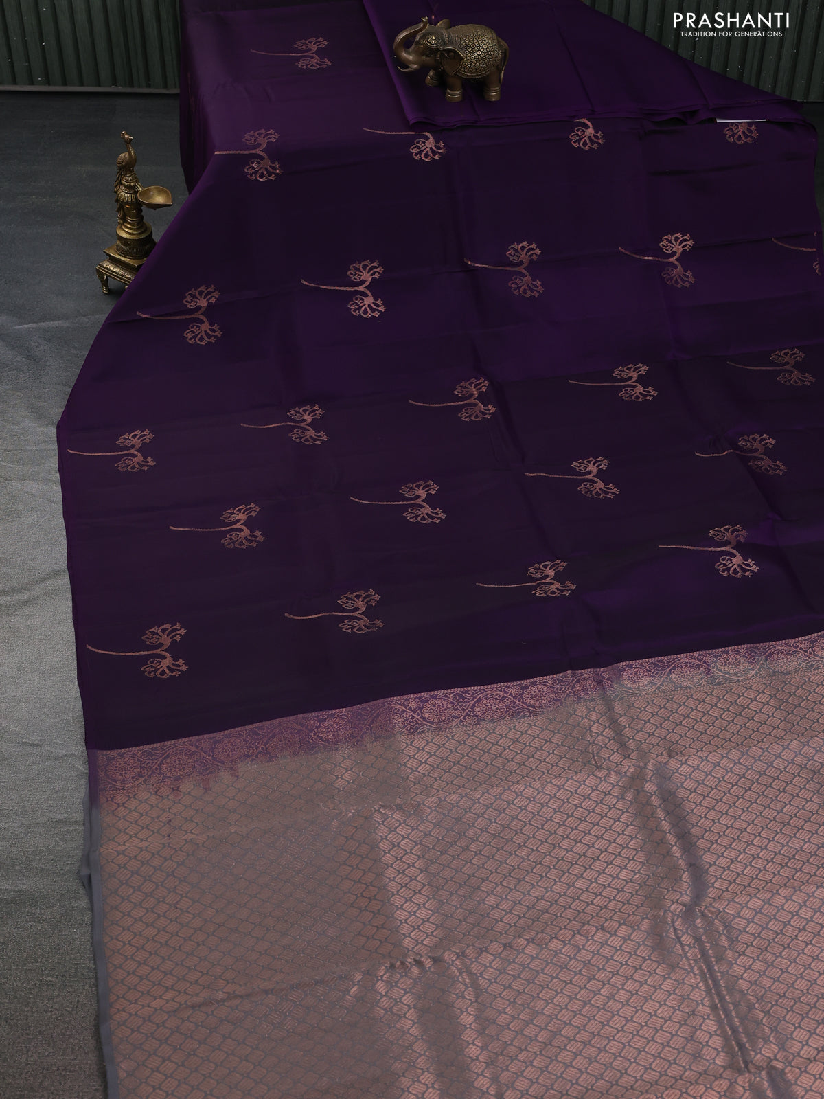 Kanchipuram silk saree violet and grey with copper zari woven buttas in borderless style