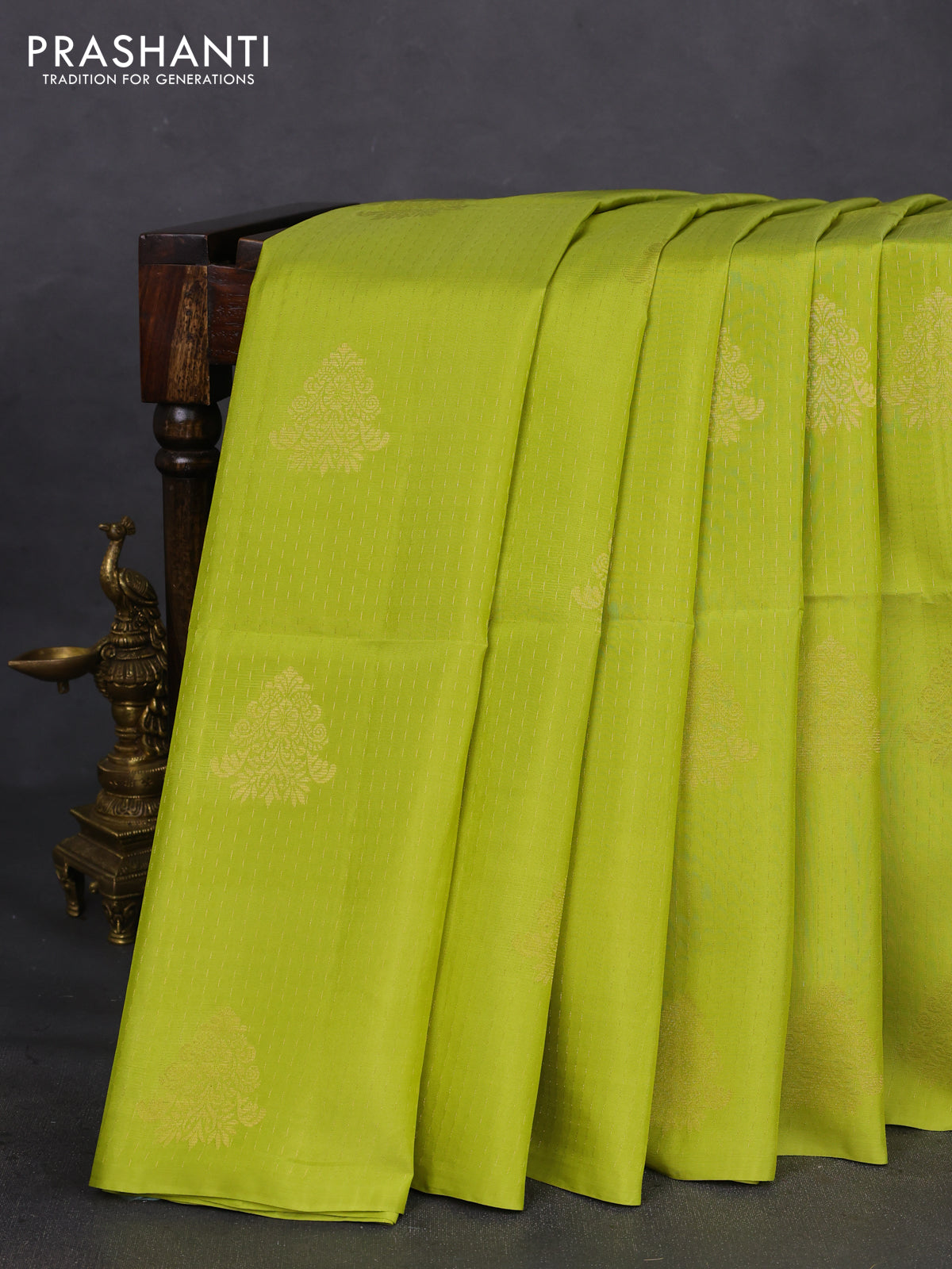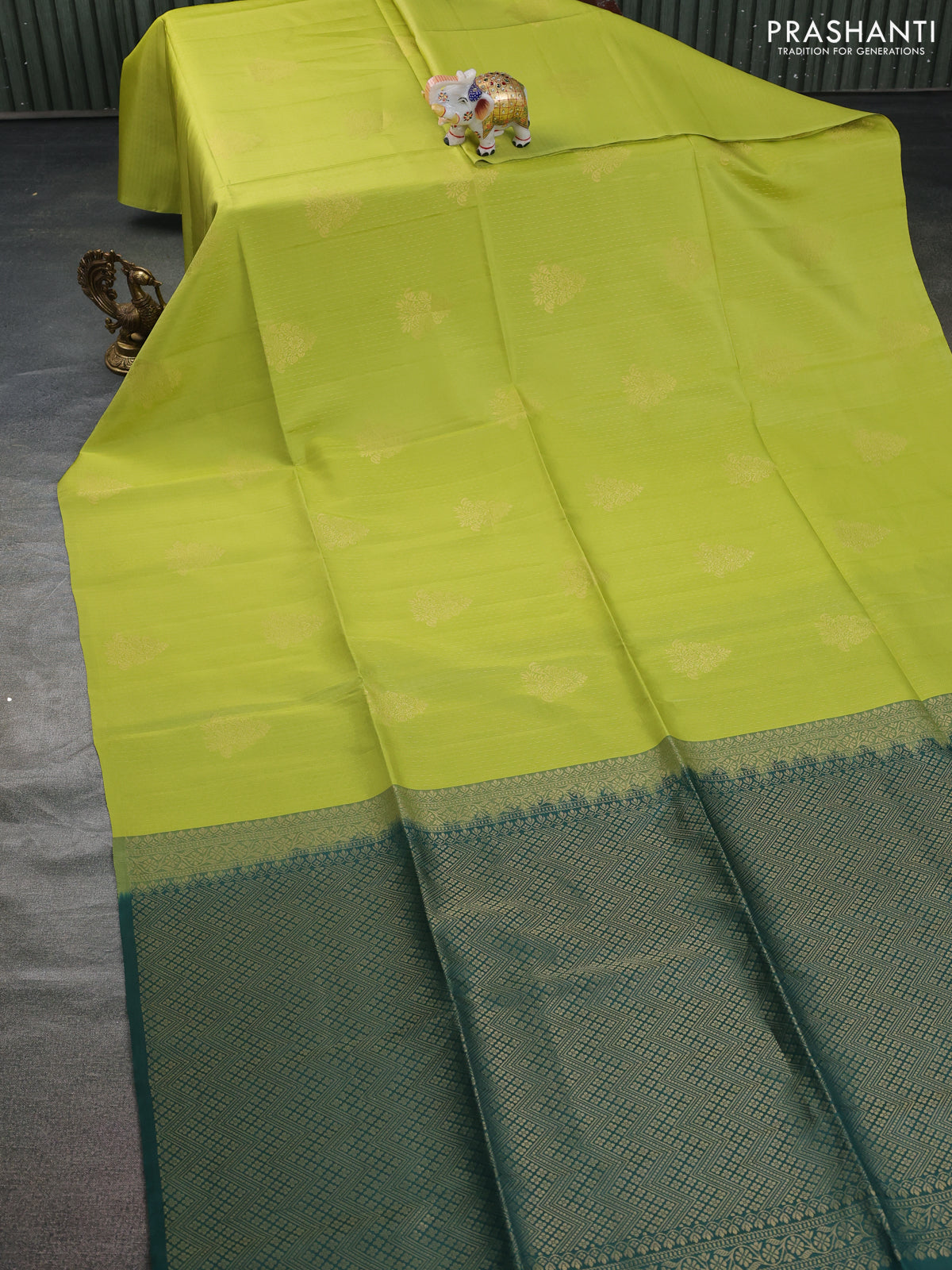 Kanchipuram soft silk saree light green and dark green with allover zari weaves & buttas in borderless style