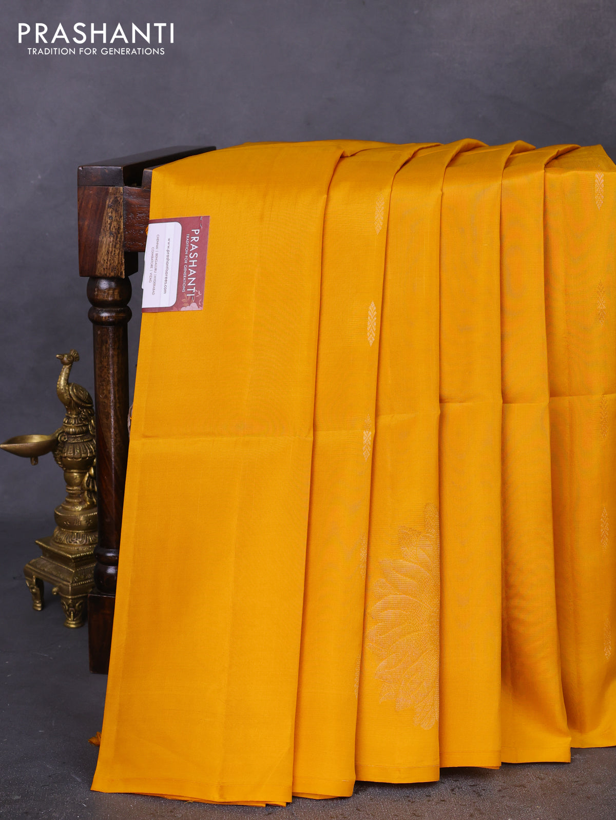 Kanchipuram soft silk saree mango yellow with zari woven buttas and floral zari woven butta border