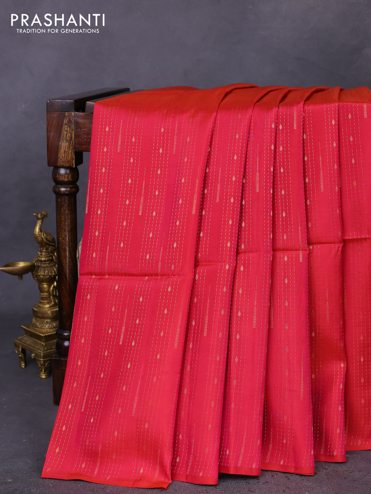 Kanchipuram soft silk saree pink and maroon with allover zari weaves in borderless style