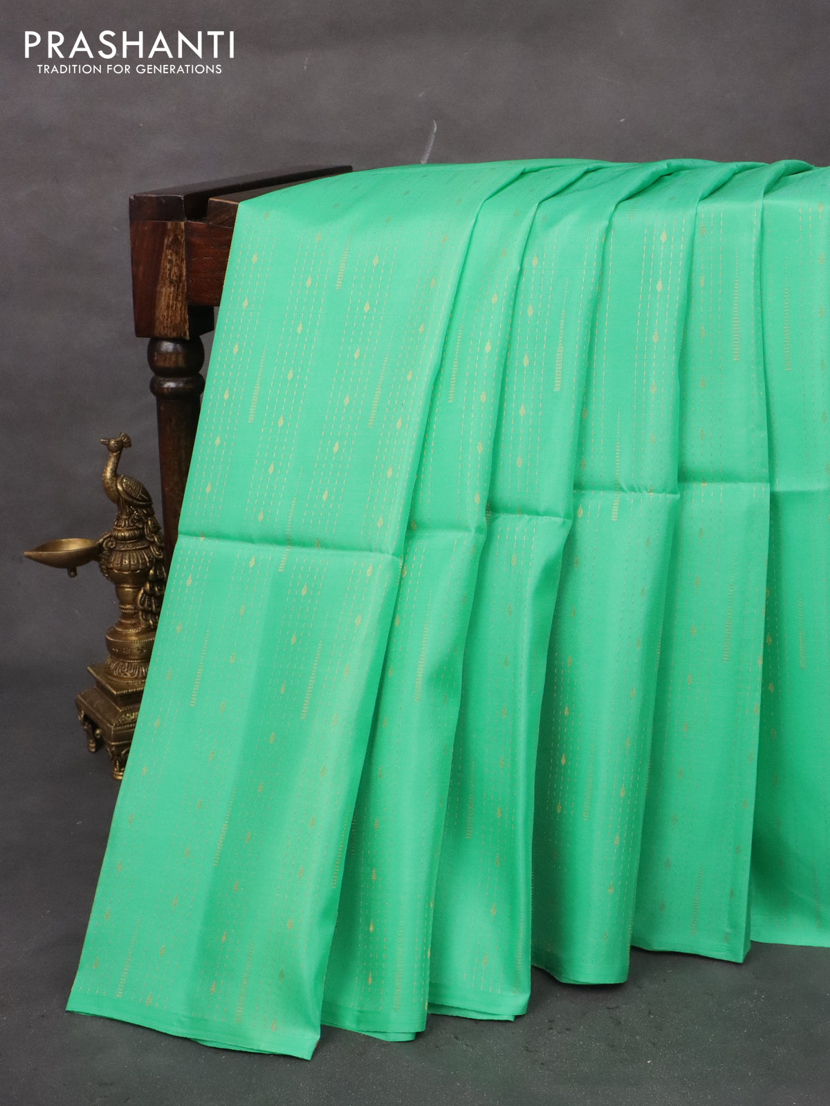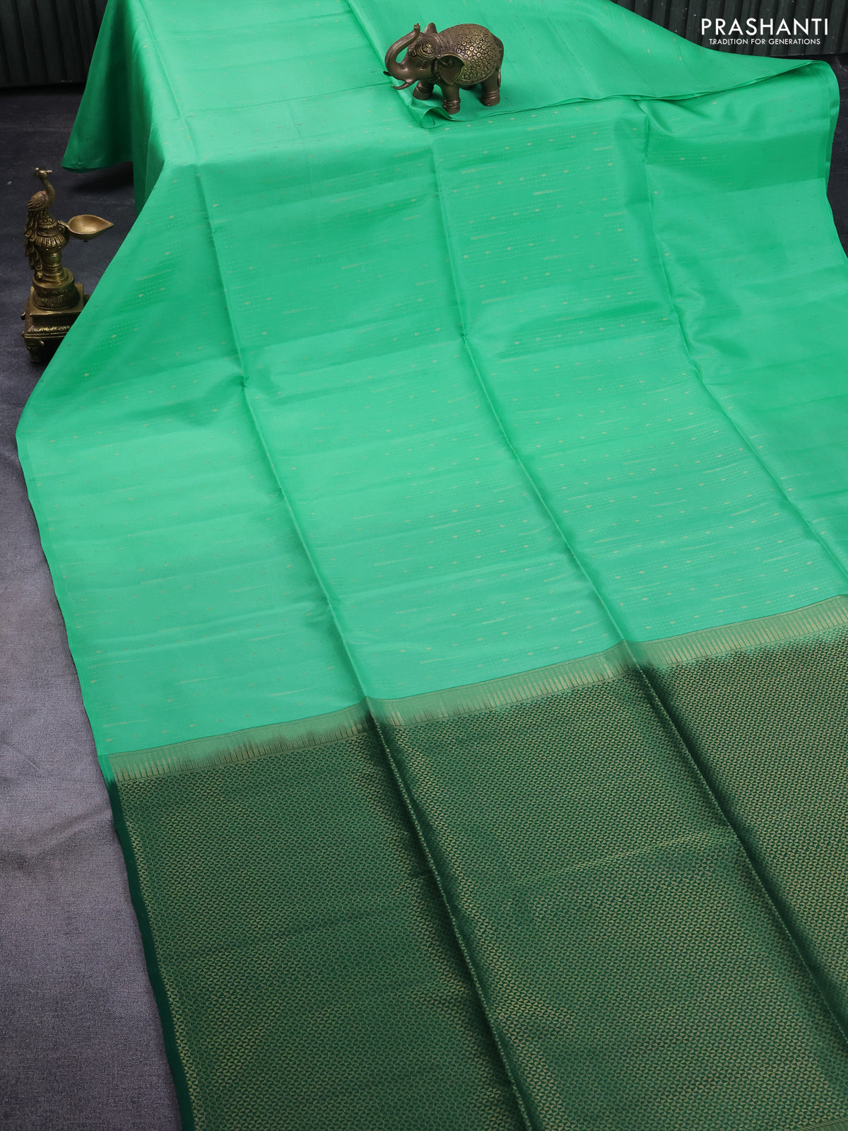 Kanchipuram soft silk saree teal green shade and green with allover zari weaves in borderless style