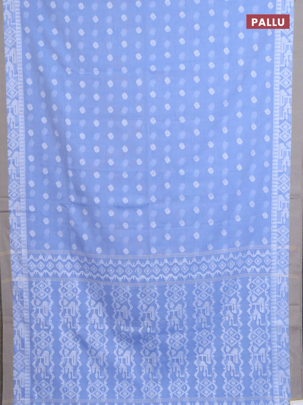 Khadi cotton saree blue shade and beige with thread woven ikat buttas and simple border