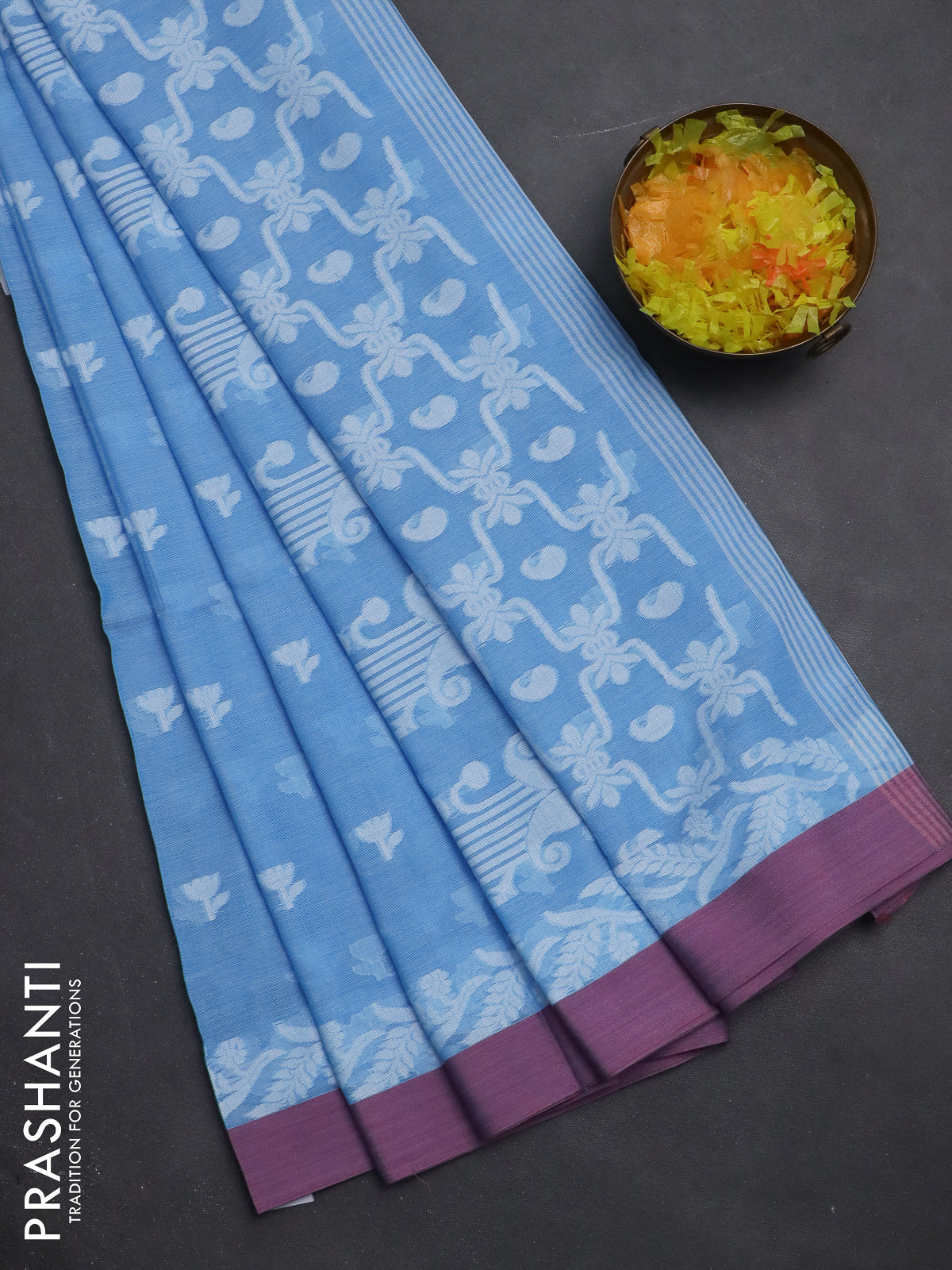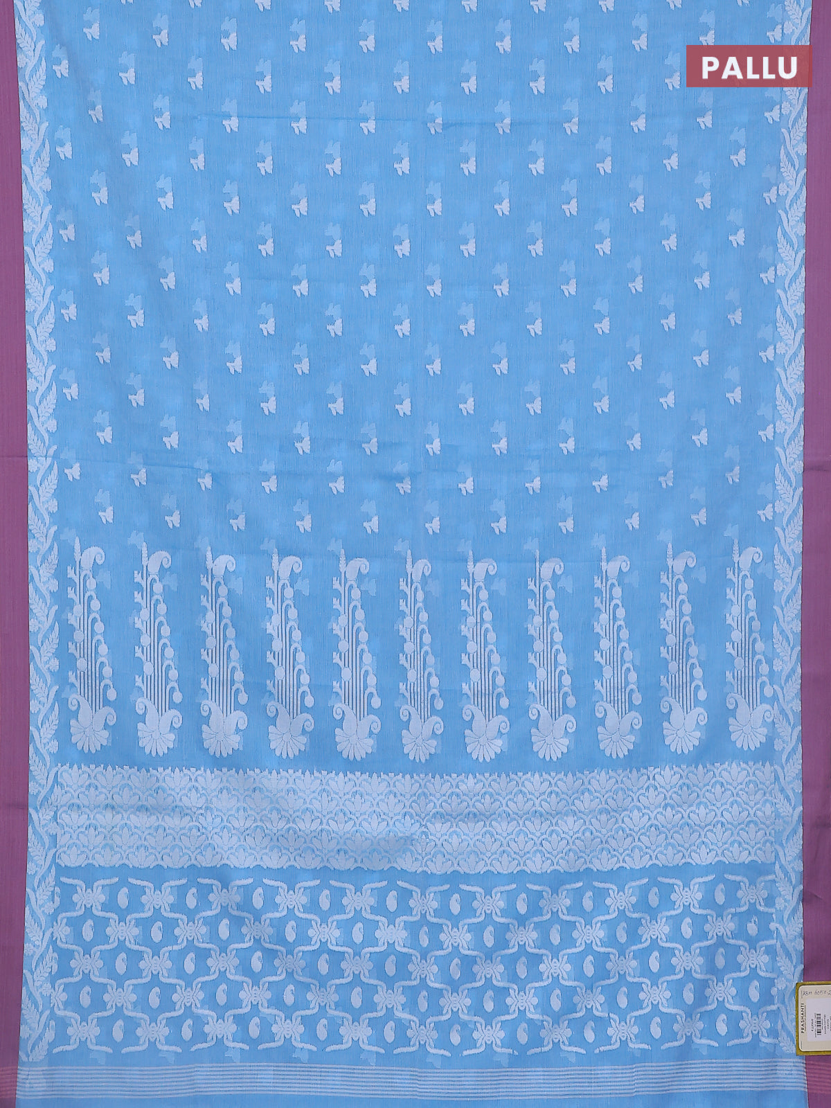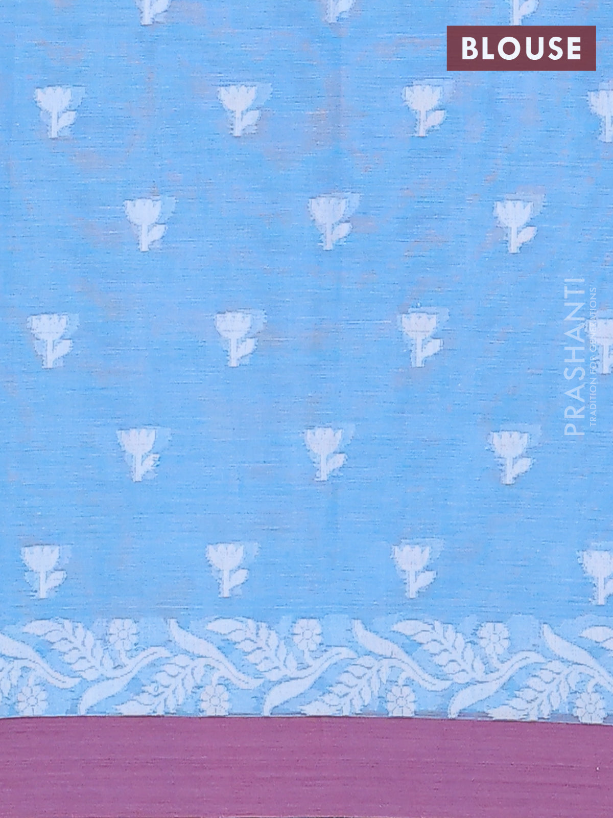 Khadi cotton saree light blue and mauve pink with allover thread woven floral buttas and simple border