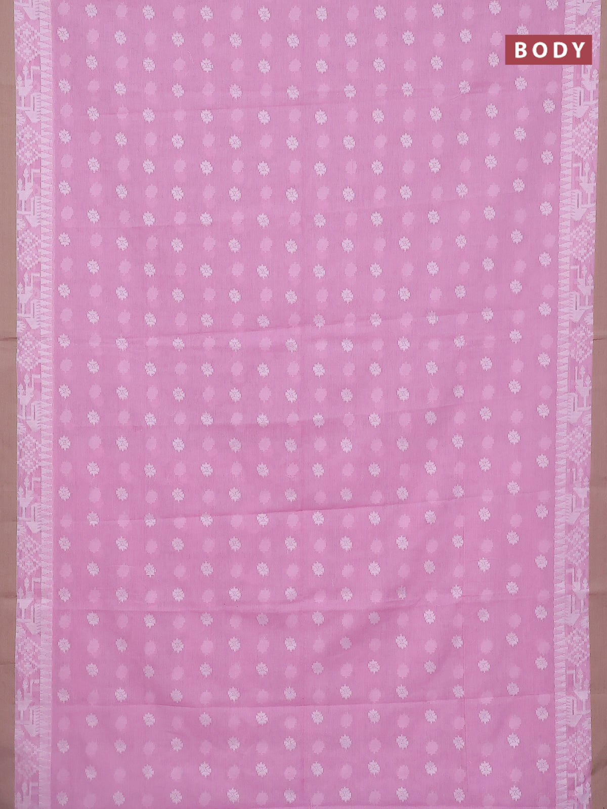 Khadi cotton saree light pink and beige with thread woven ikat buttas and simple border