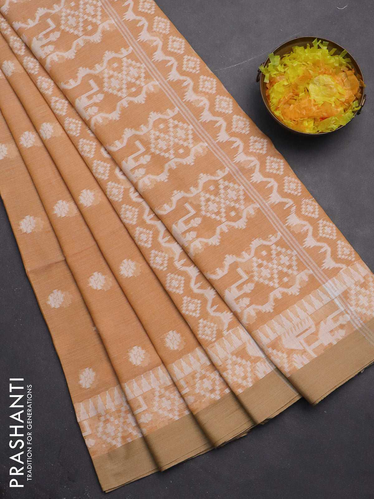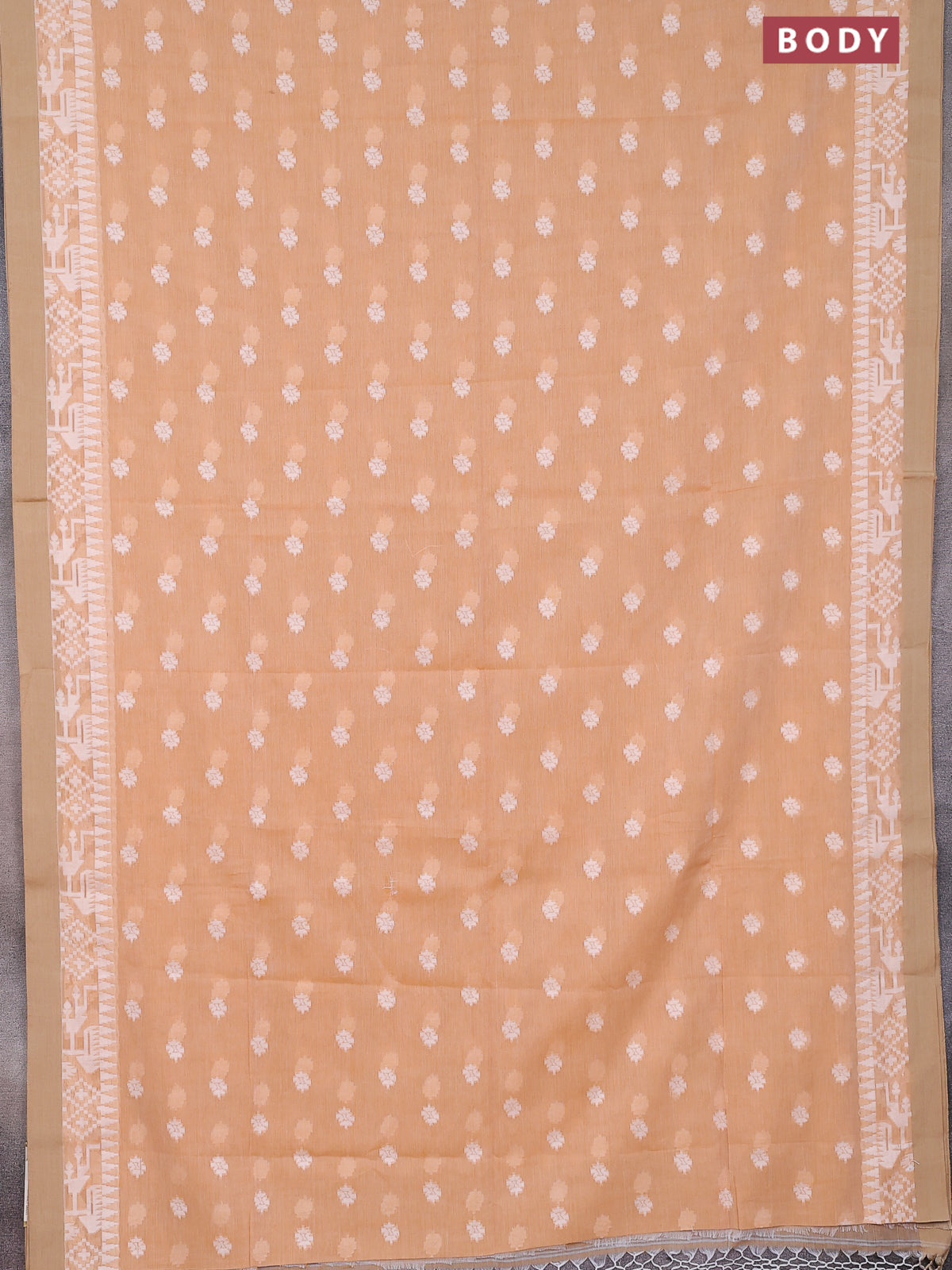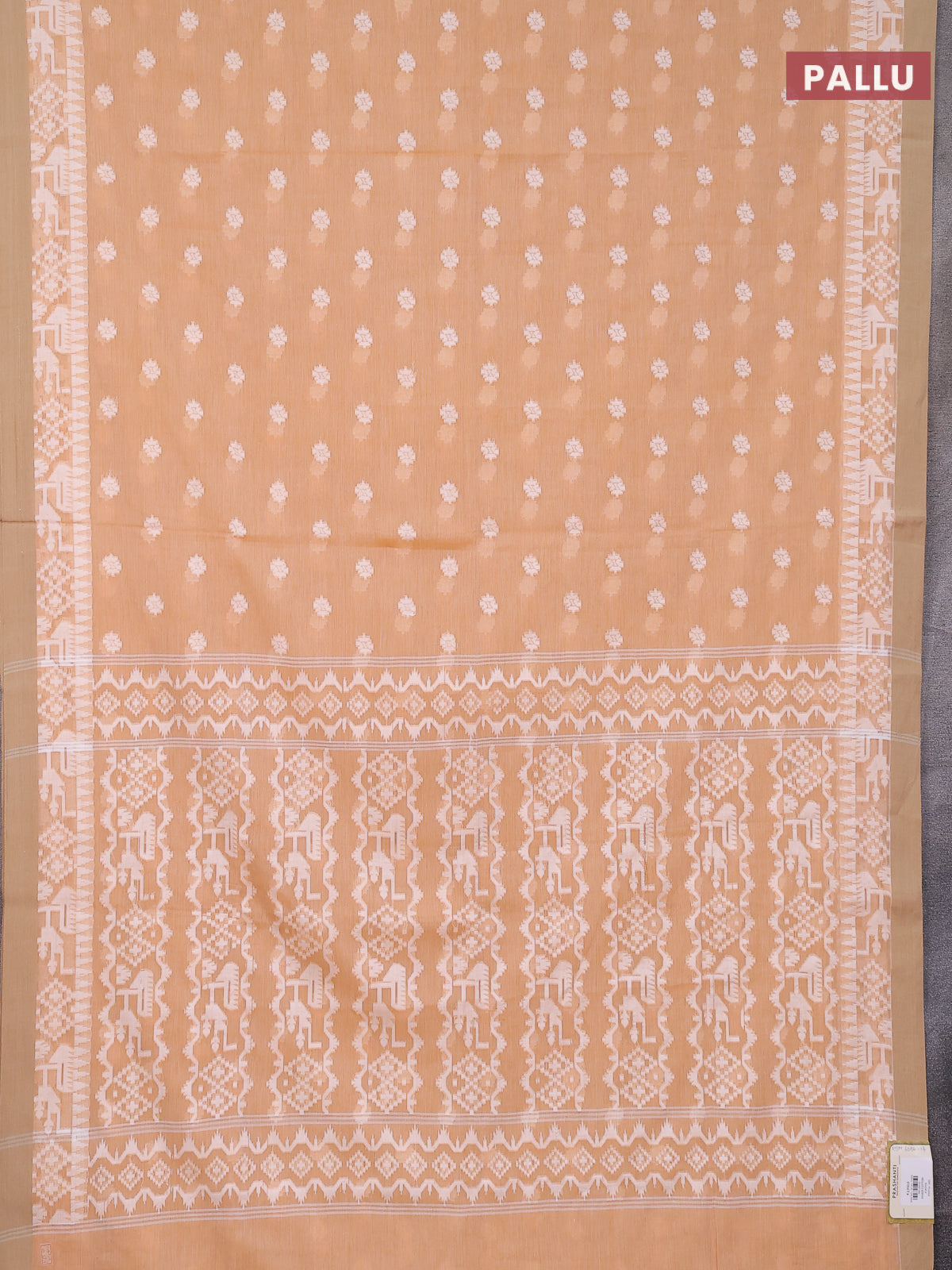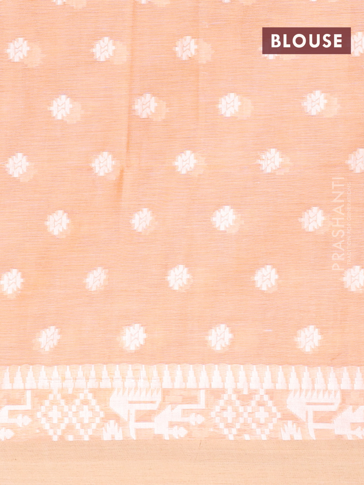 Khadi cotton saree pale orange and beige with thread woven ikat buttas and simple border
