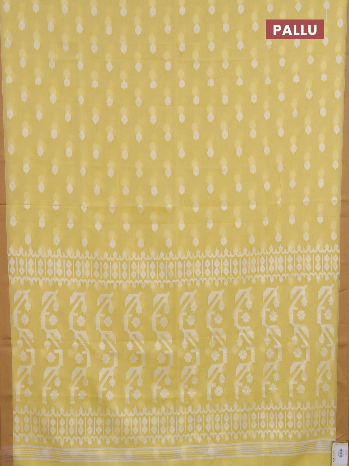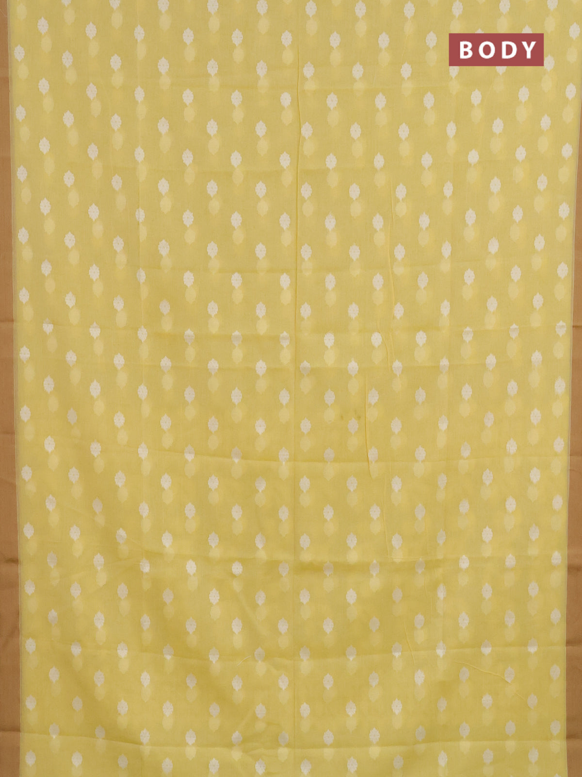 Khadi cotton saree pale yellow and sandal with allover thread woven ikat buttas and simple border