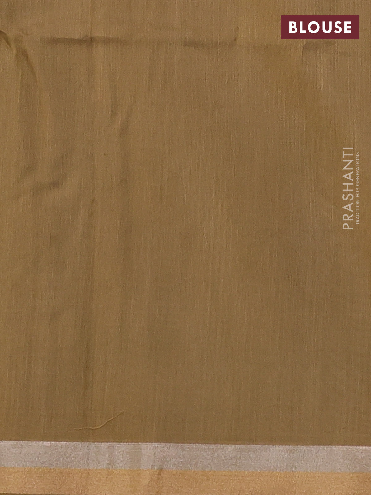Kora silk cotton saree grey and dark sandal with silver & gold zari woven buttas and zari woven border