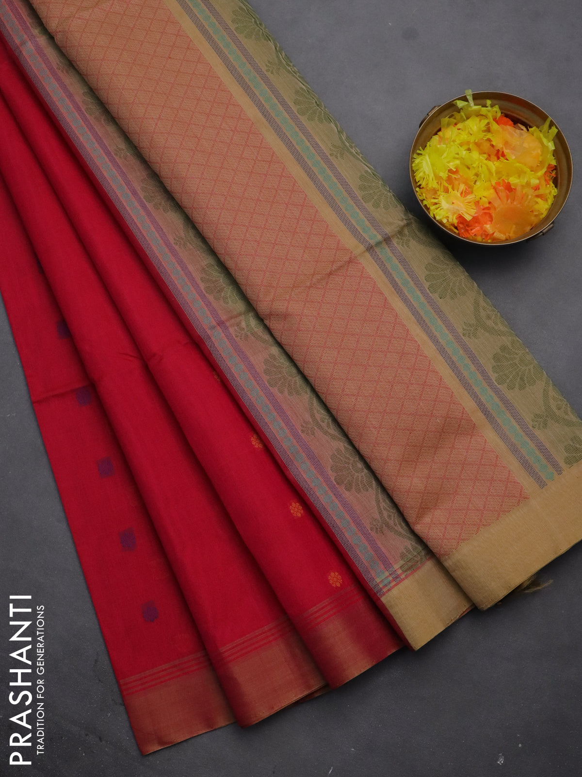 Material : Kora Silk Cotton Blouse : Attached Length of saree : 6.2 mts (5.5 mts saree & 70 cms... Read more