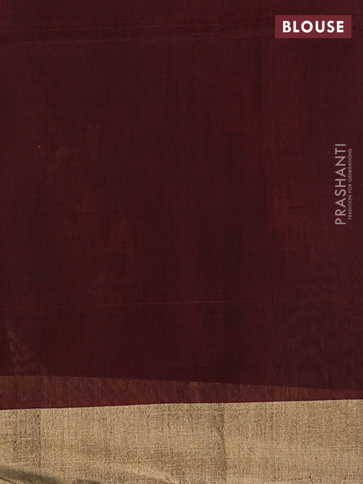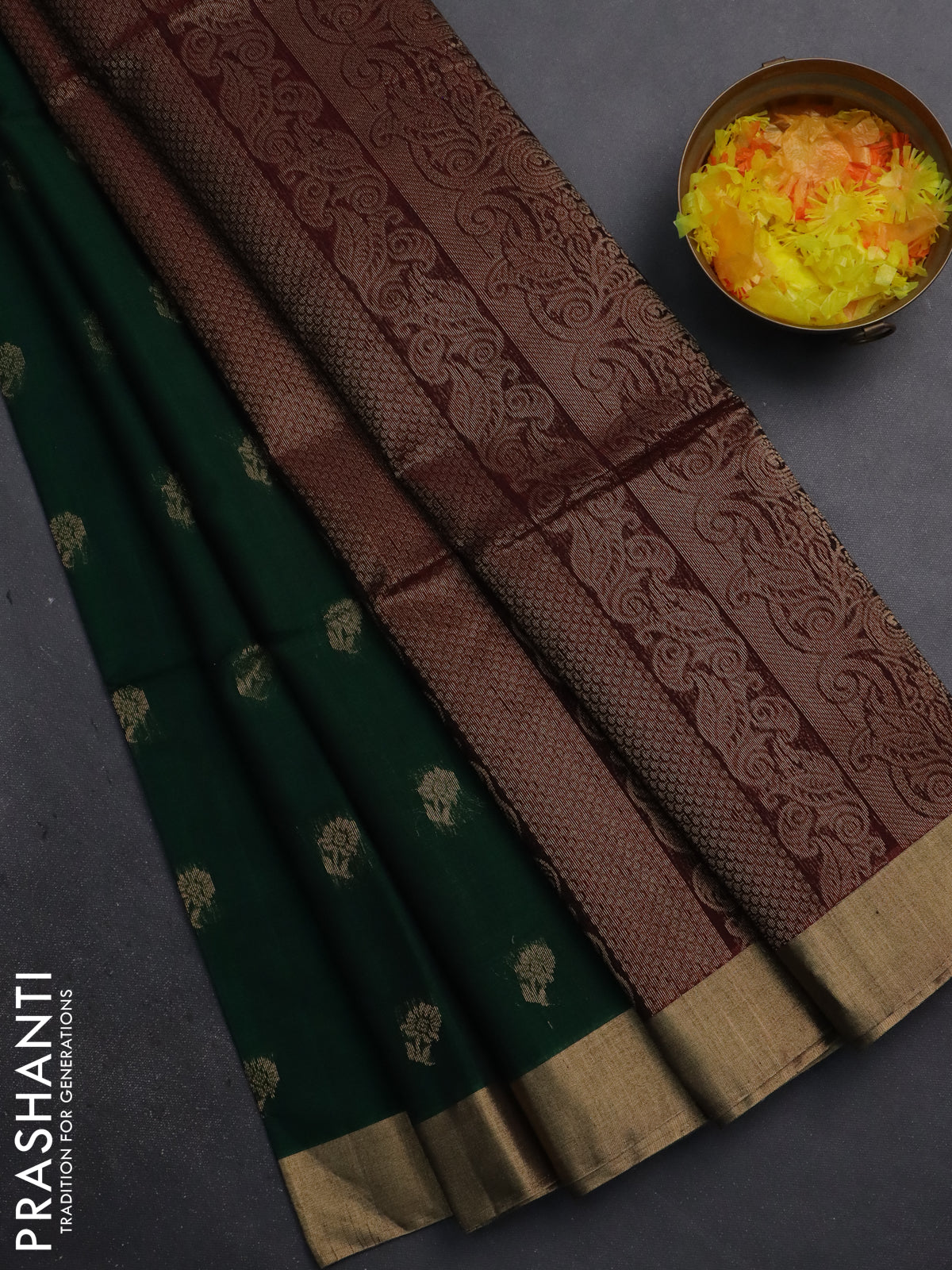 Kora silk partly cotton saree green and maroon with zari woven floral buttas and zari woven border