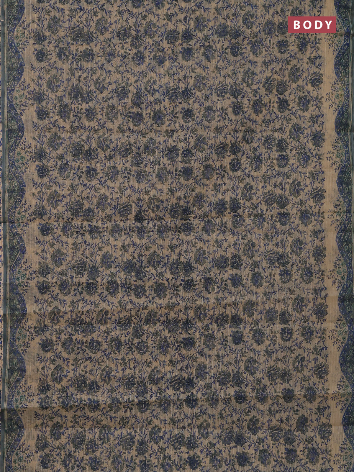 Kota doria saree beige and blue with allover block prints and printed border