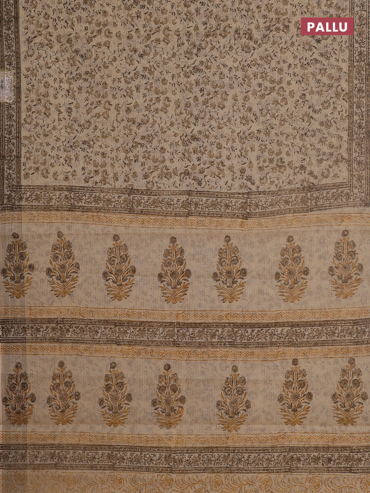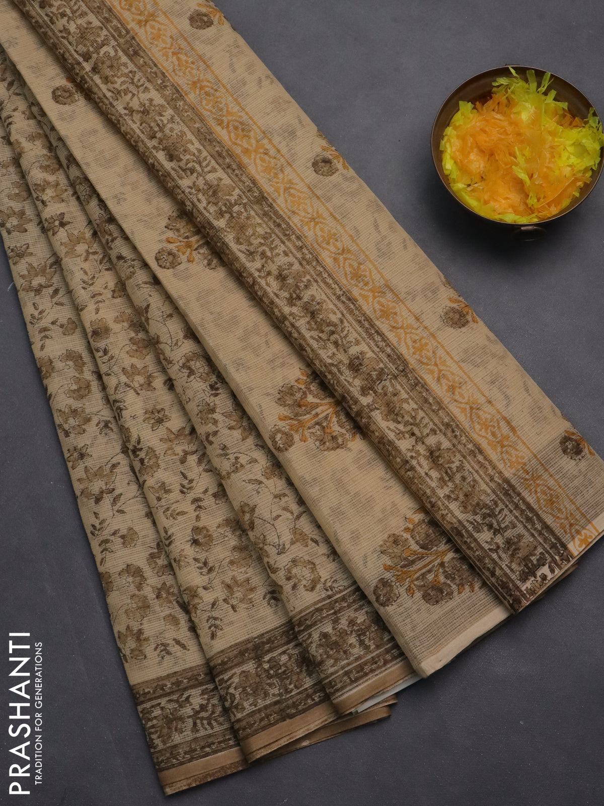 Kota doria saree beige and dark sandal with allover block prints and printed border