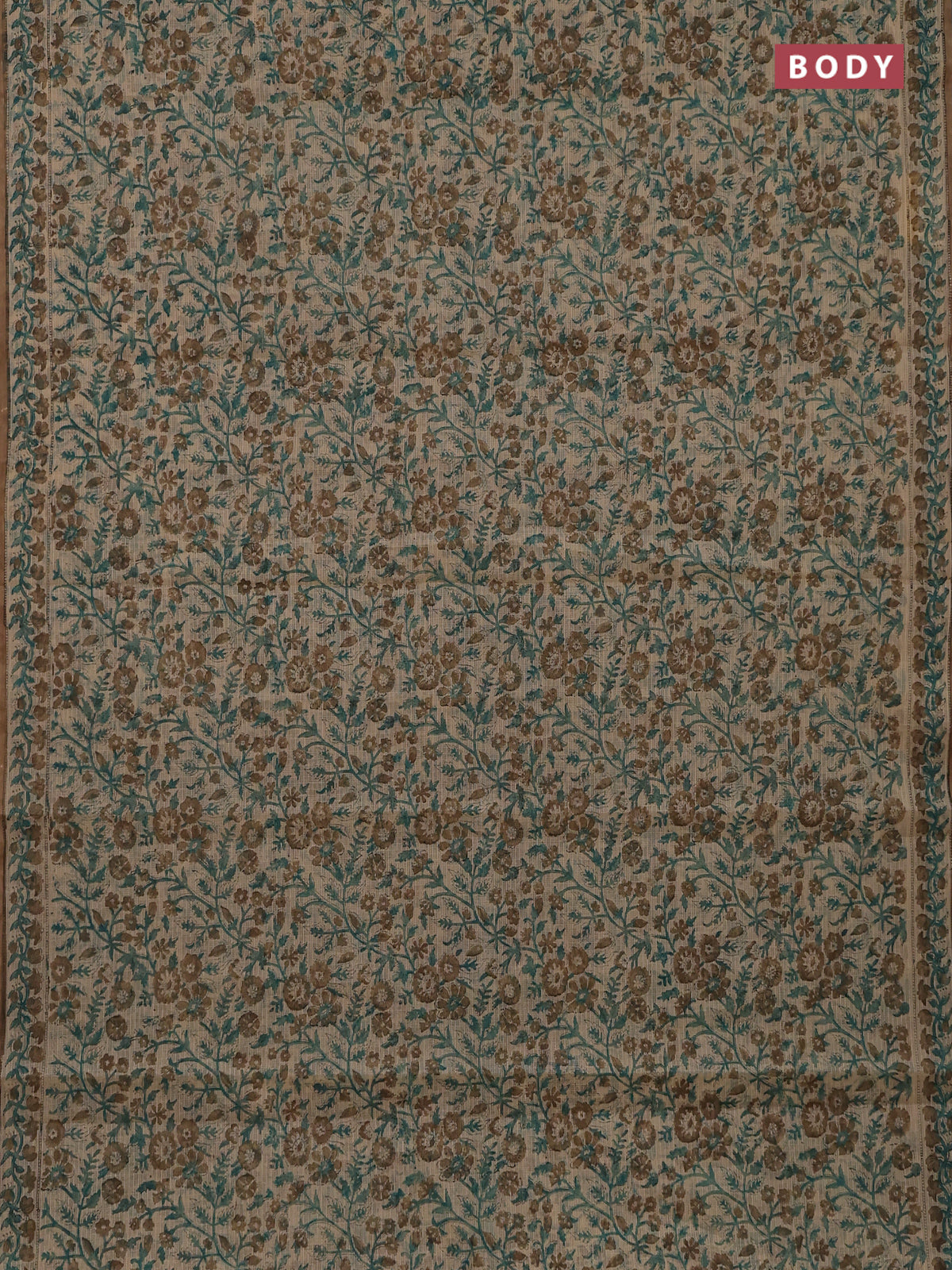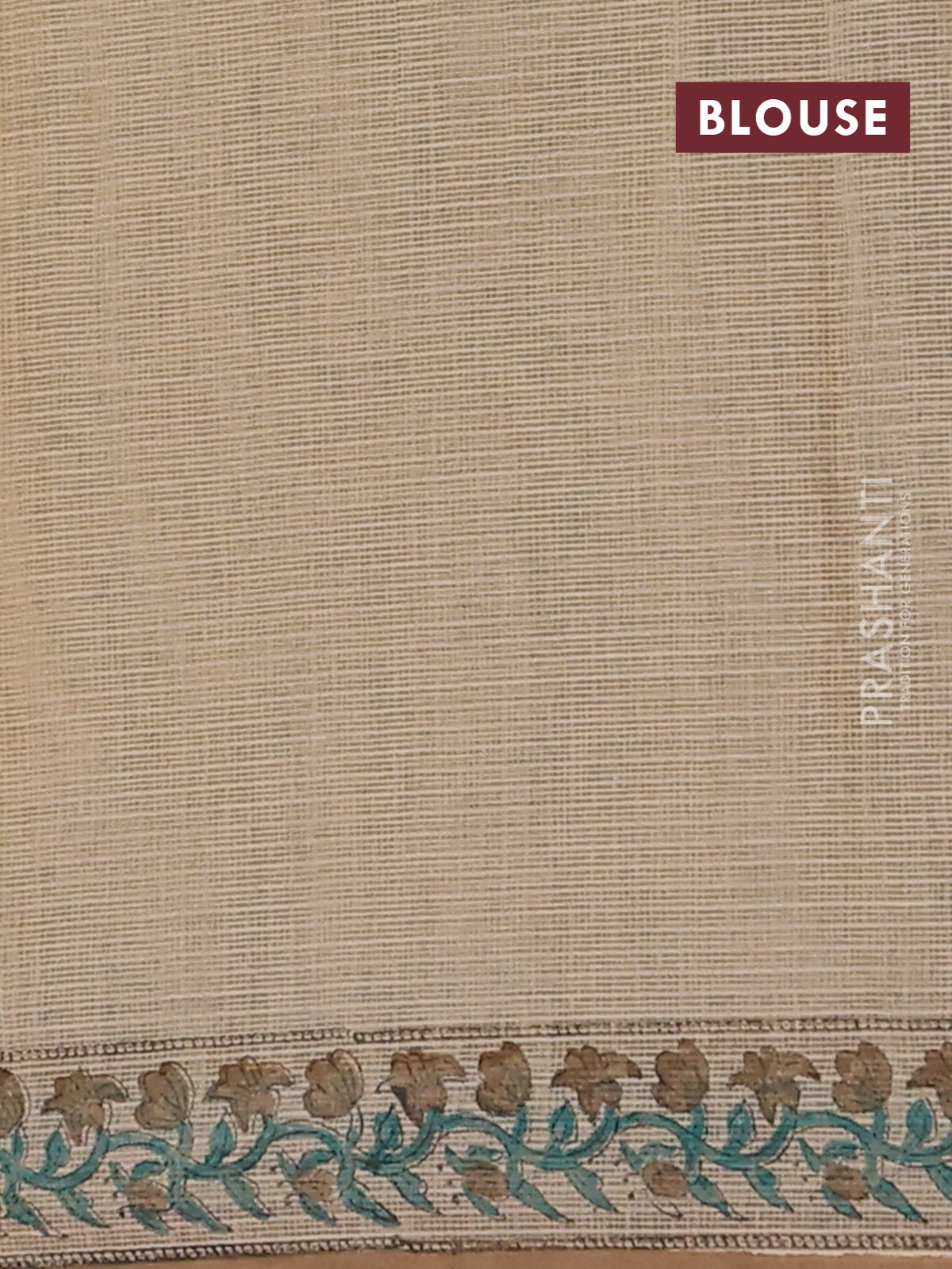 Kota doria saree beige and dark sandal with allover block prints and printed border