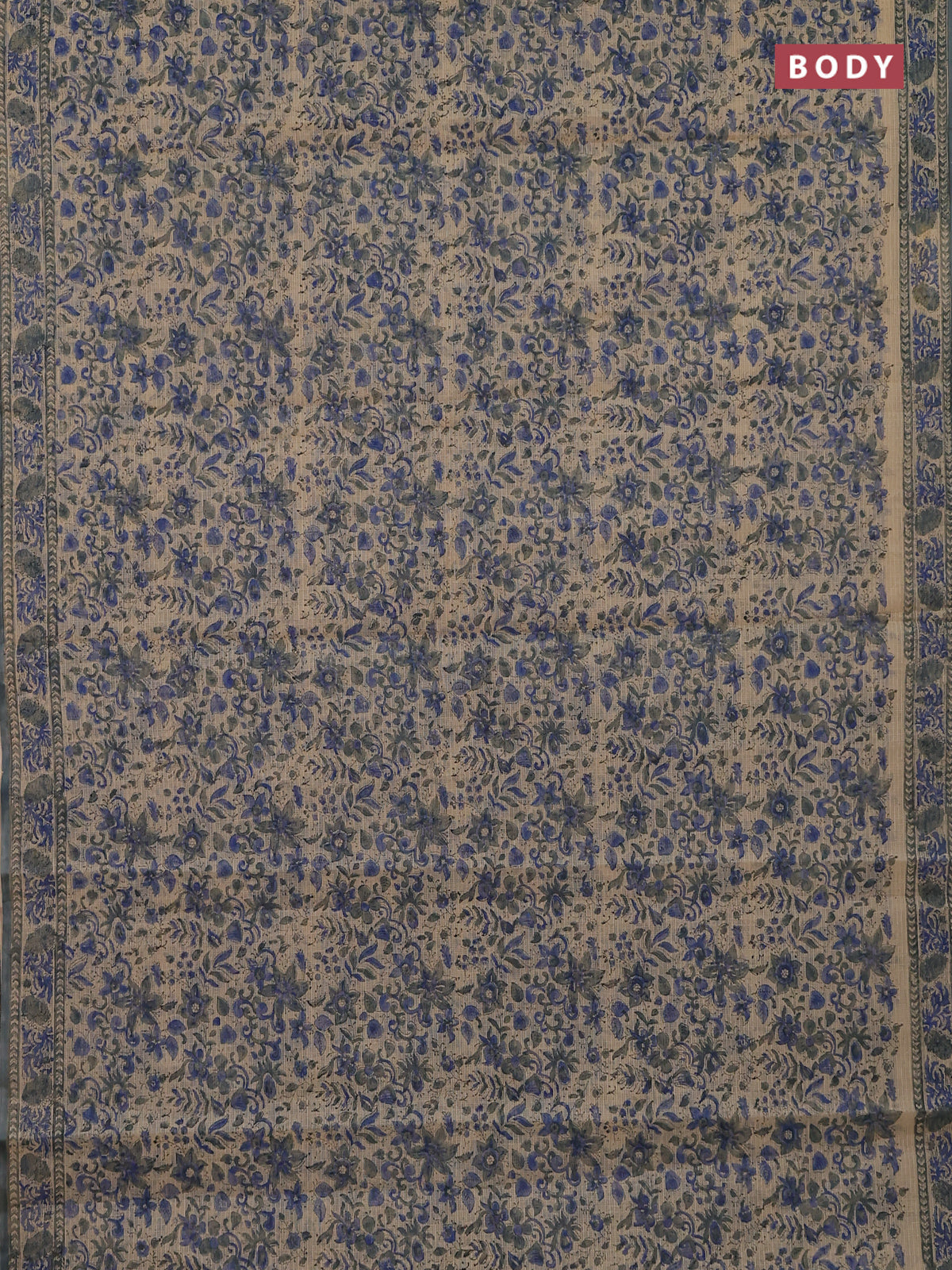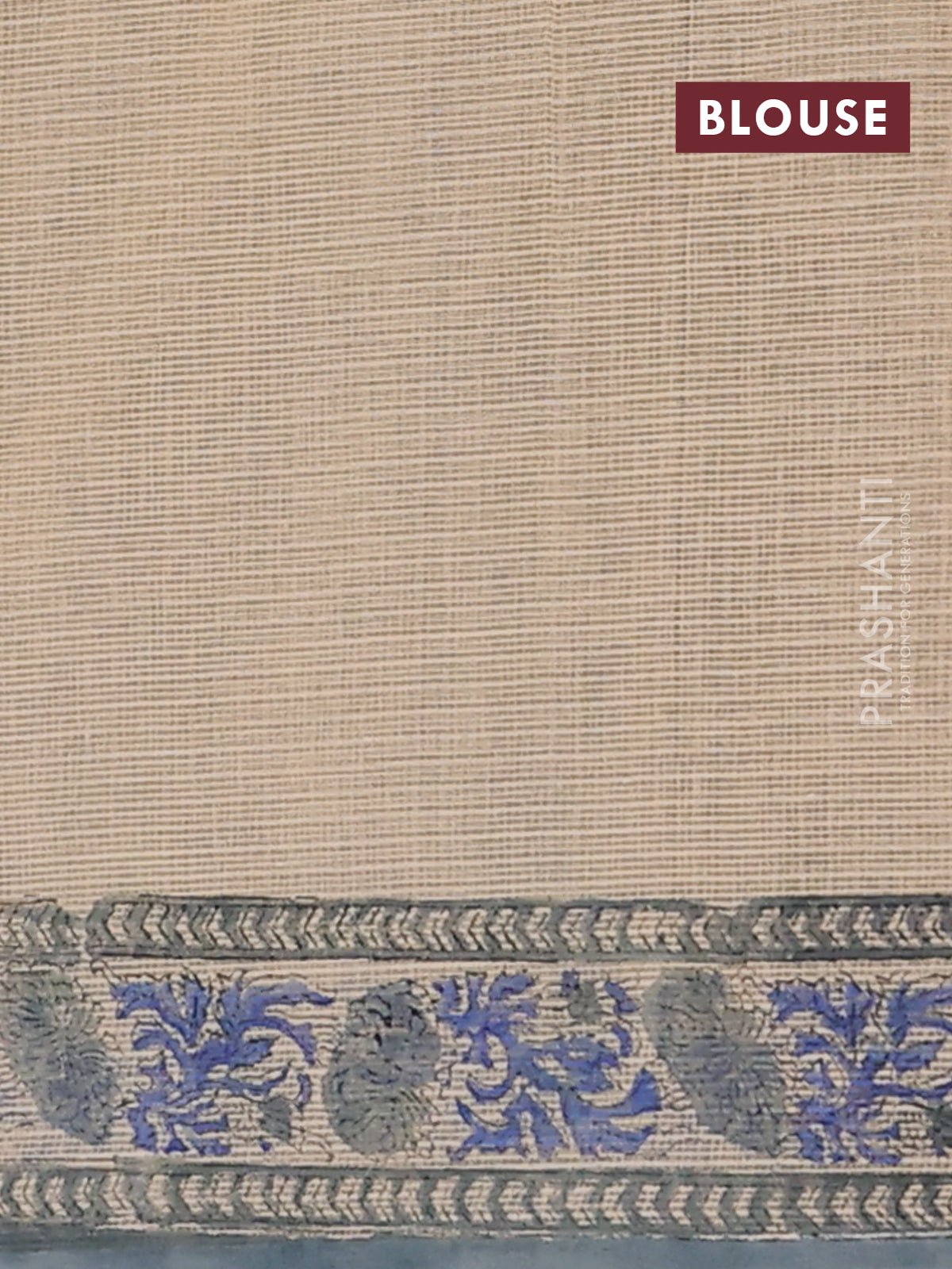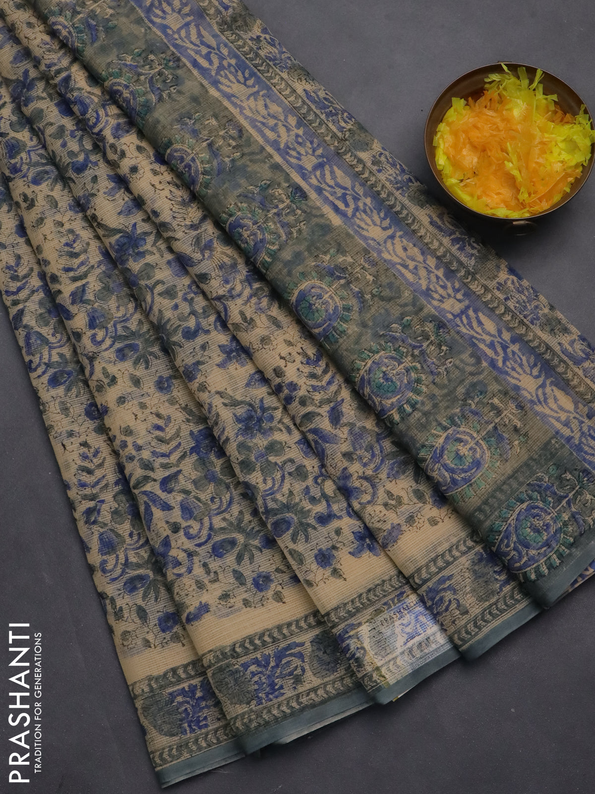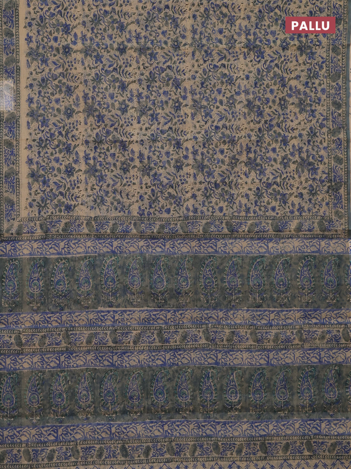 Kota doria saree beige blue and grey with allover block prints and printed border