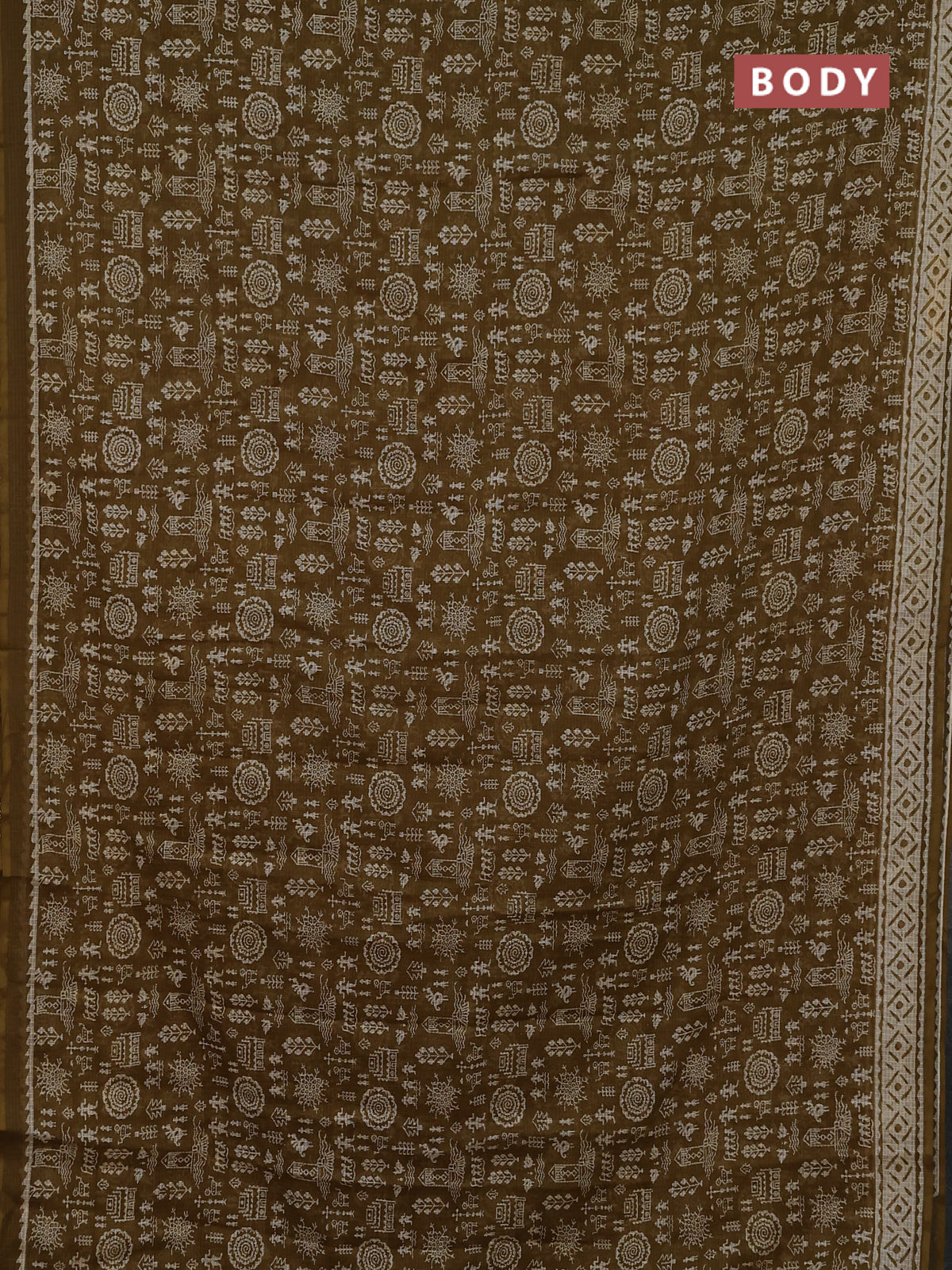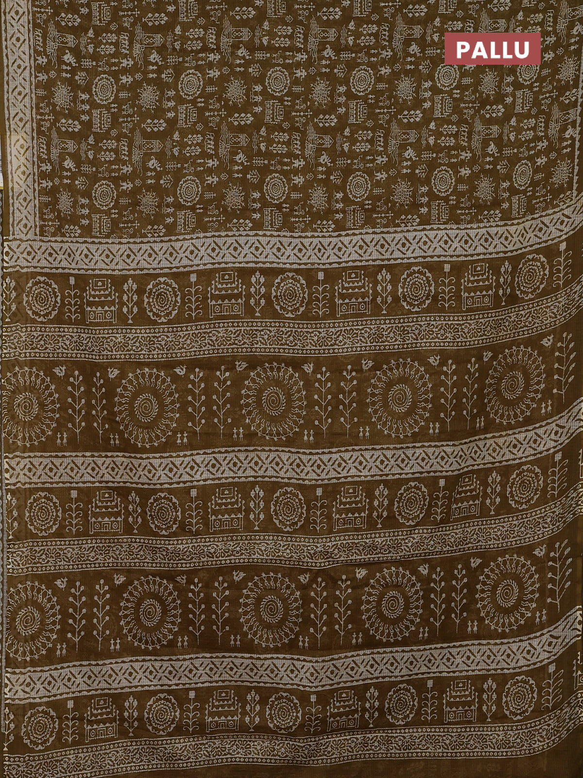 Kota doria saree mehendi green and cream with allover warli prints and printed border