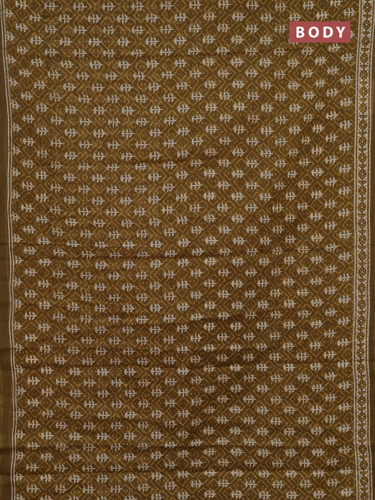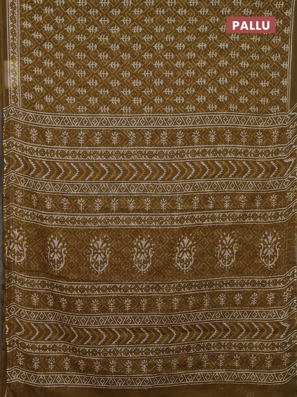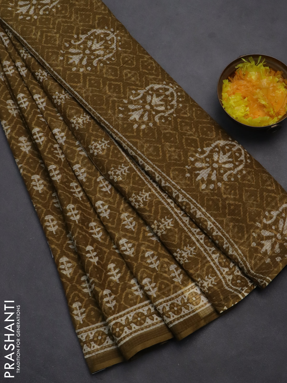Kota doria saree mehendi green with allover dabu prints and printed border