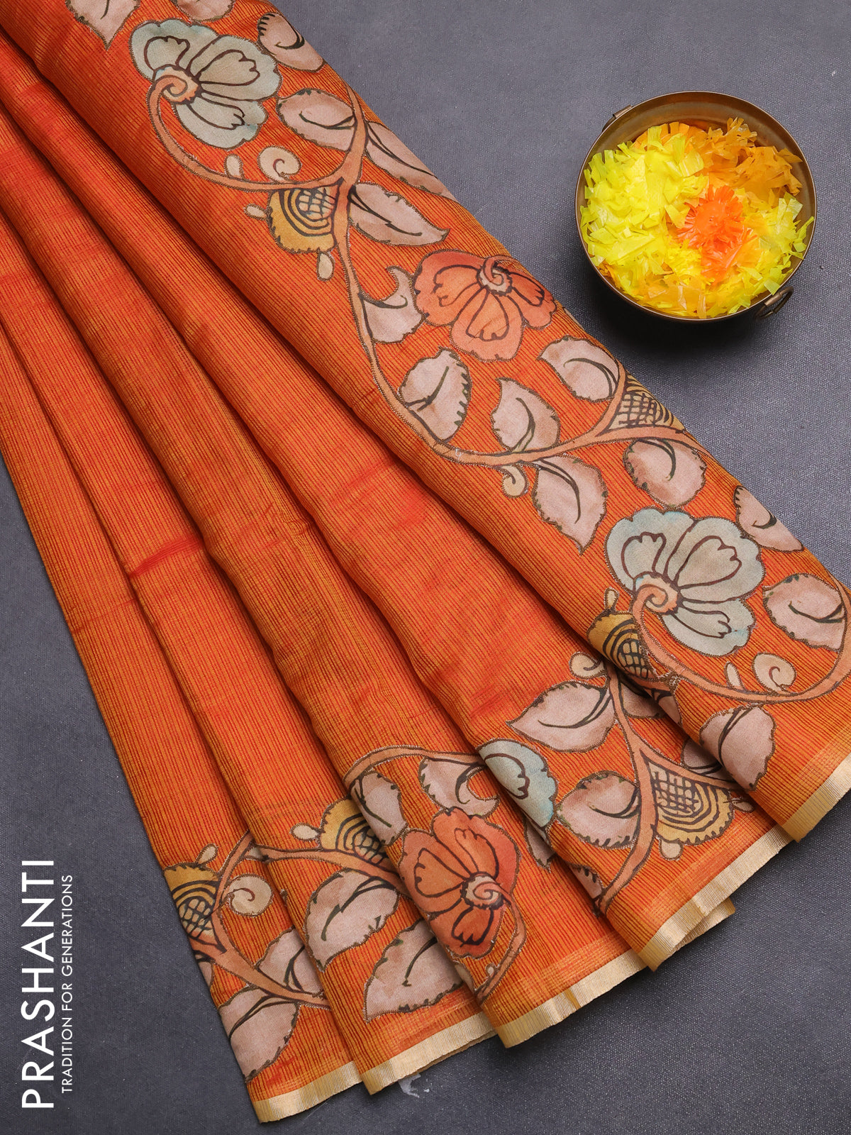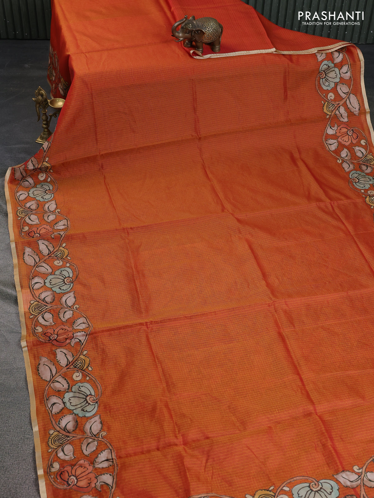 Kota saree dual shade of rustic orange with kalamkari applique work
