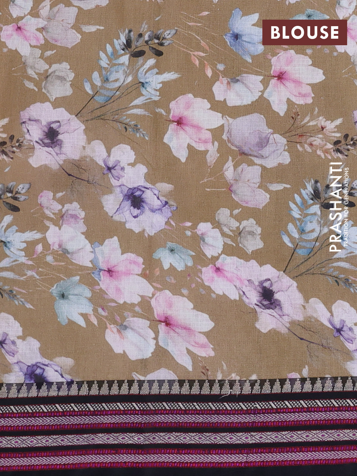 Kota silk cotton saree beige and black with allover floral digital prints and woven border