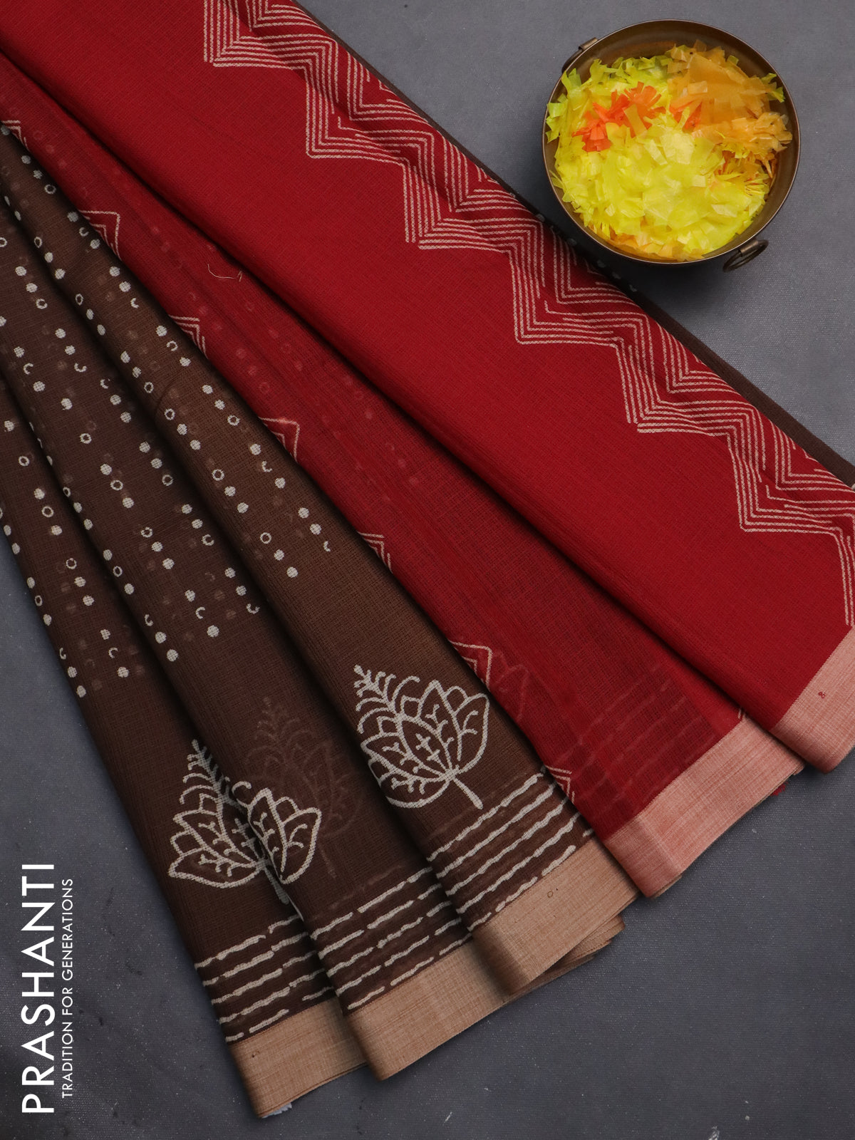 Kota silk cotton saree brown and maroon with allover block prints and simple border