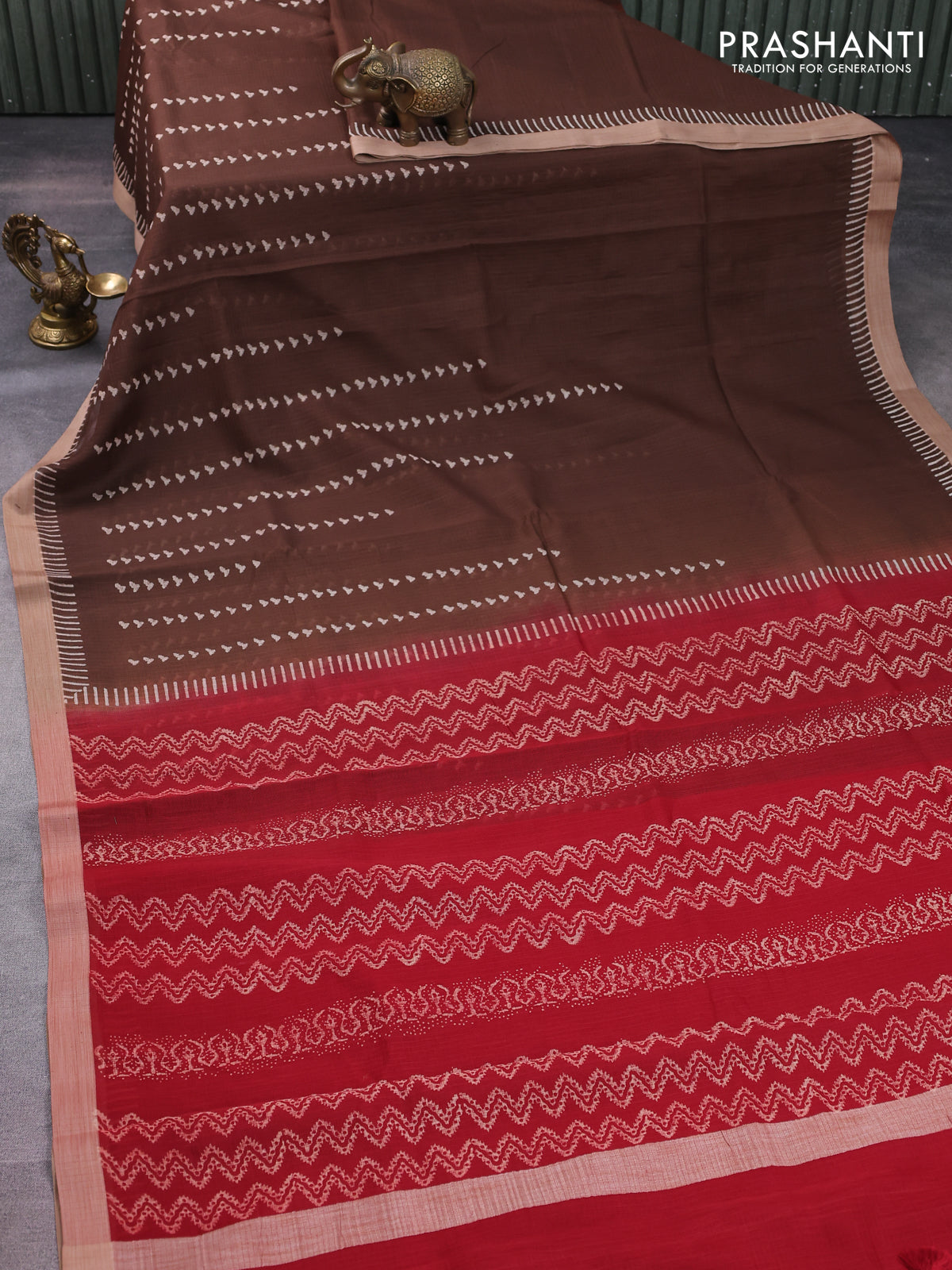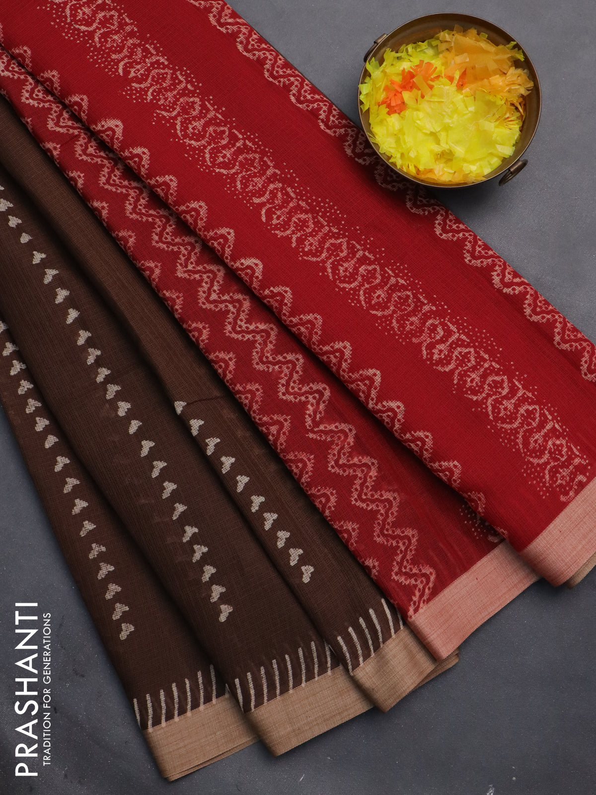 Kota silk cotton saree brown and maroon with allover block prints and simple border