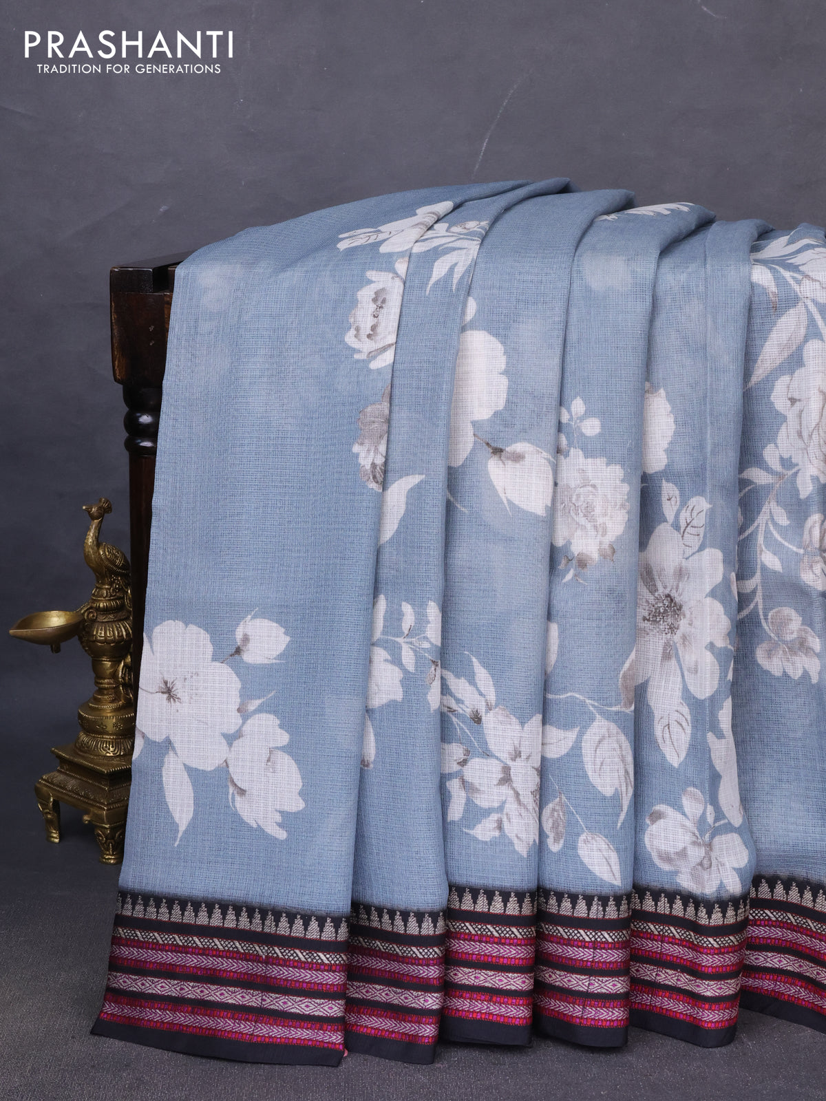 Kota silk cotton saree grey and black with allover floral digital prints and woven border