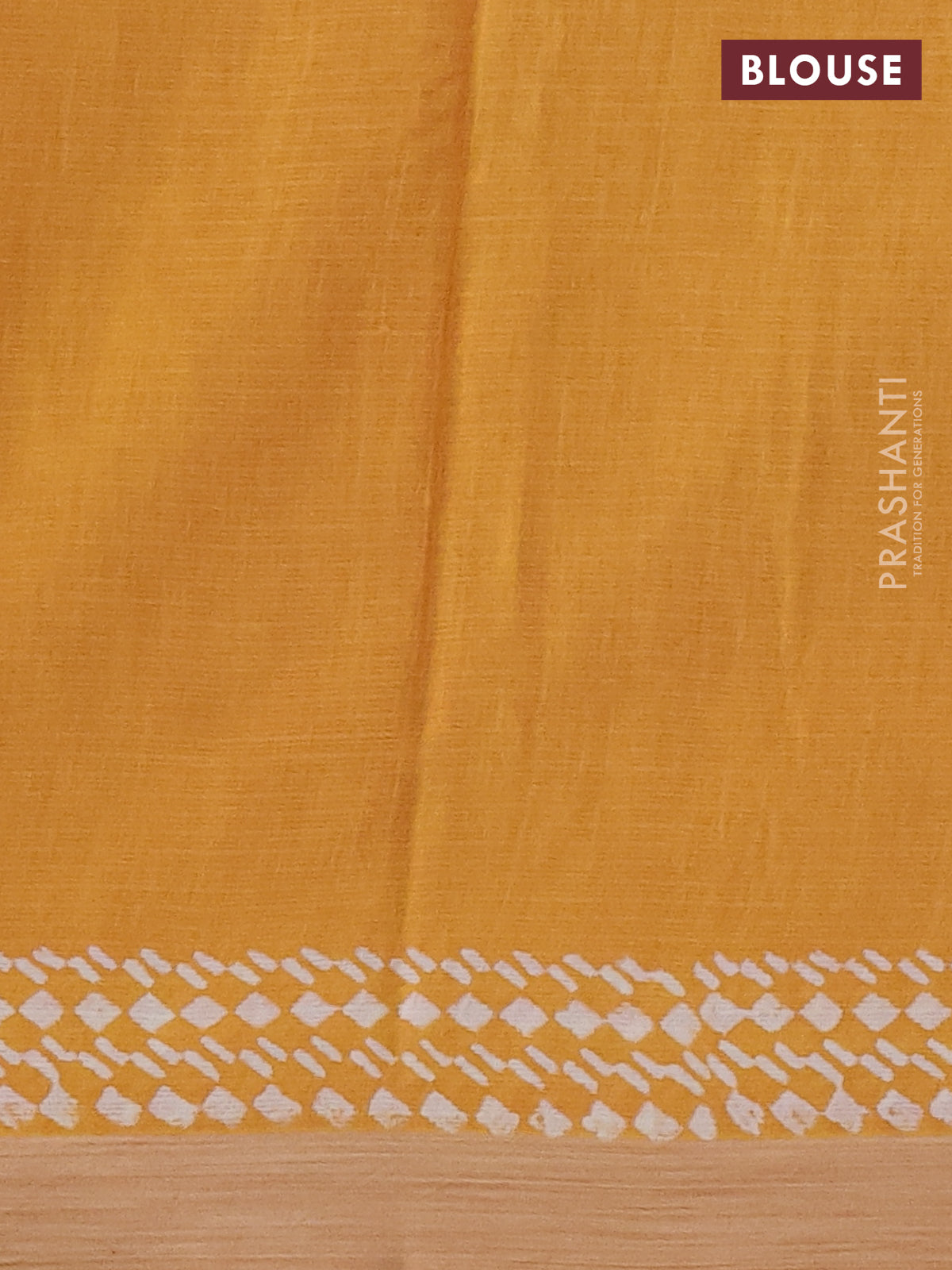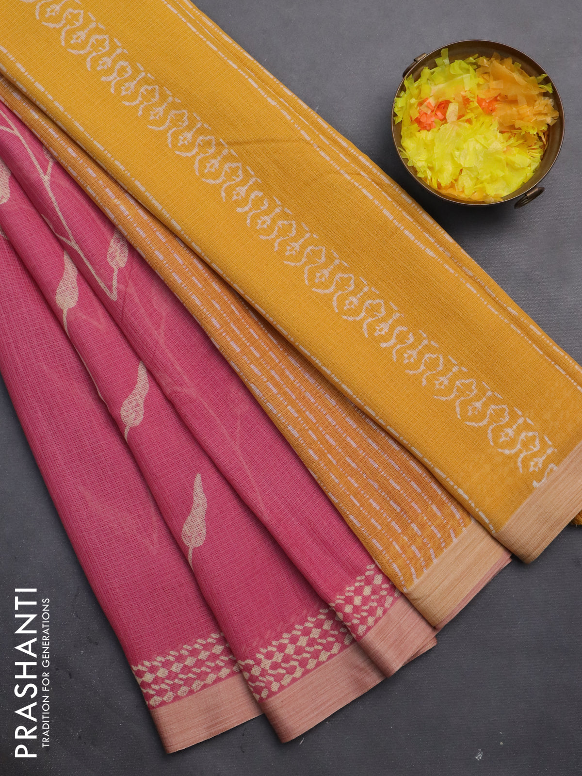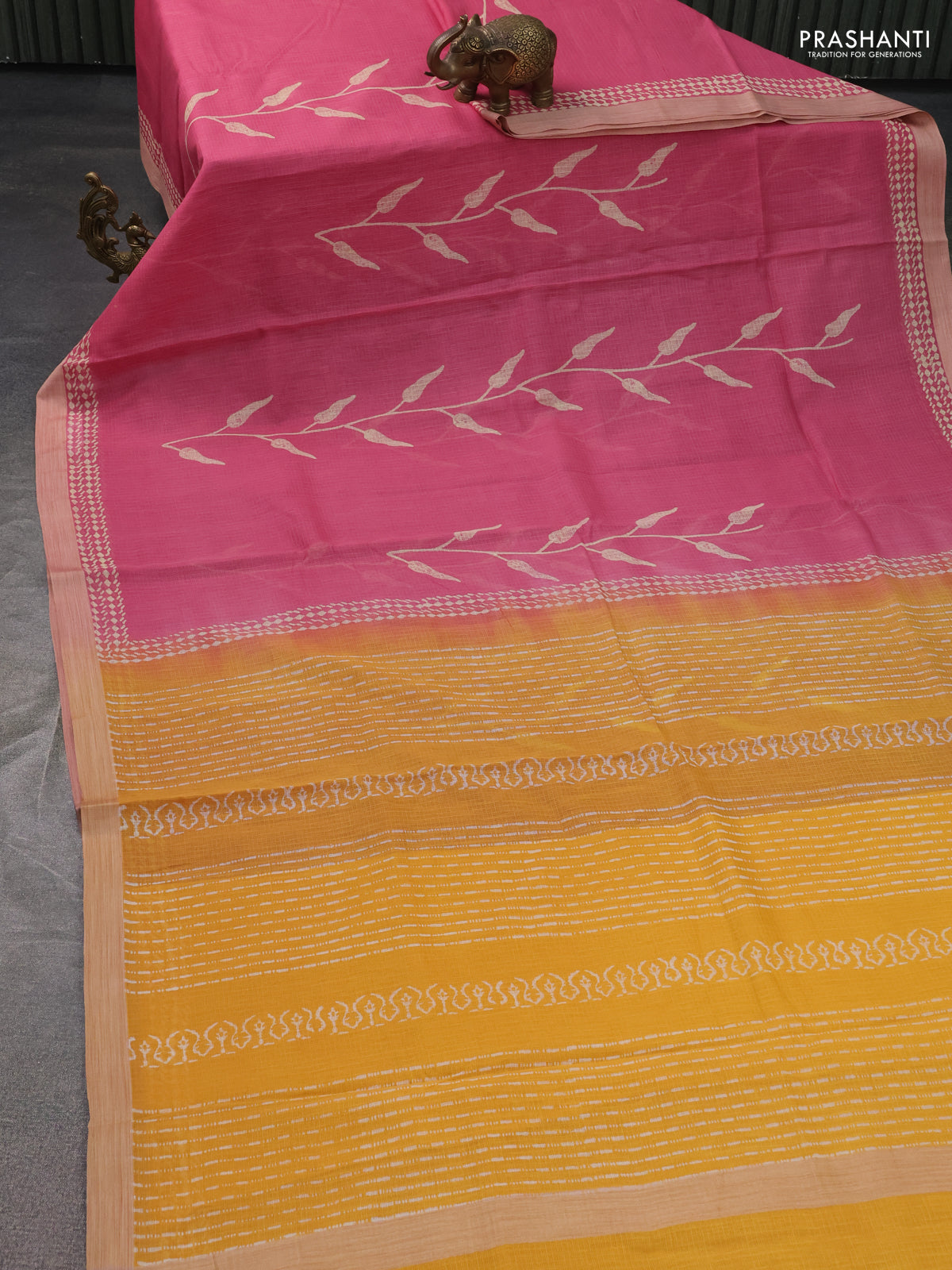 Kota silk cotton saree light pink and yellow with allover block prints and simple border