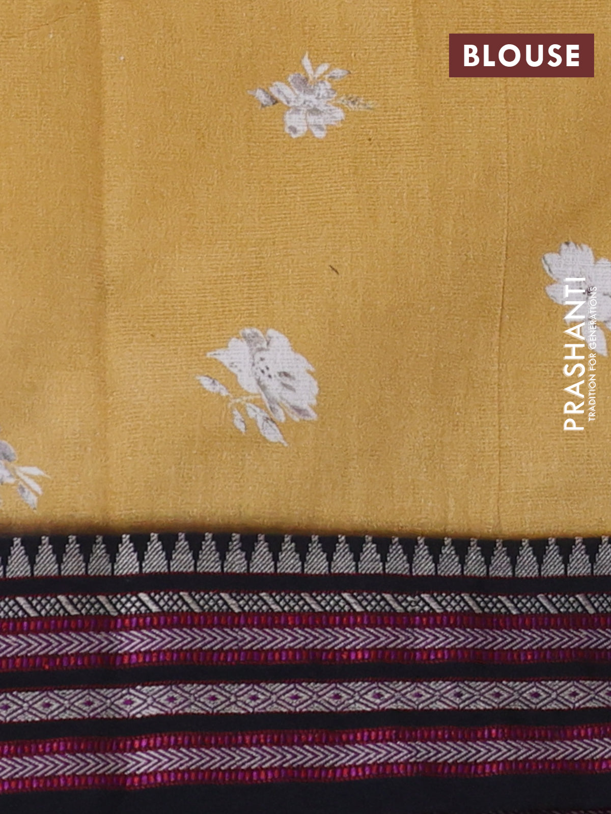 Kota silk cotton saree mustard shade and black with allover floral digital prints and woven border