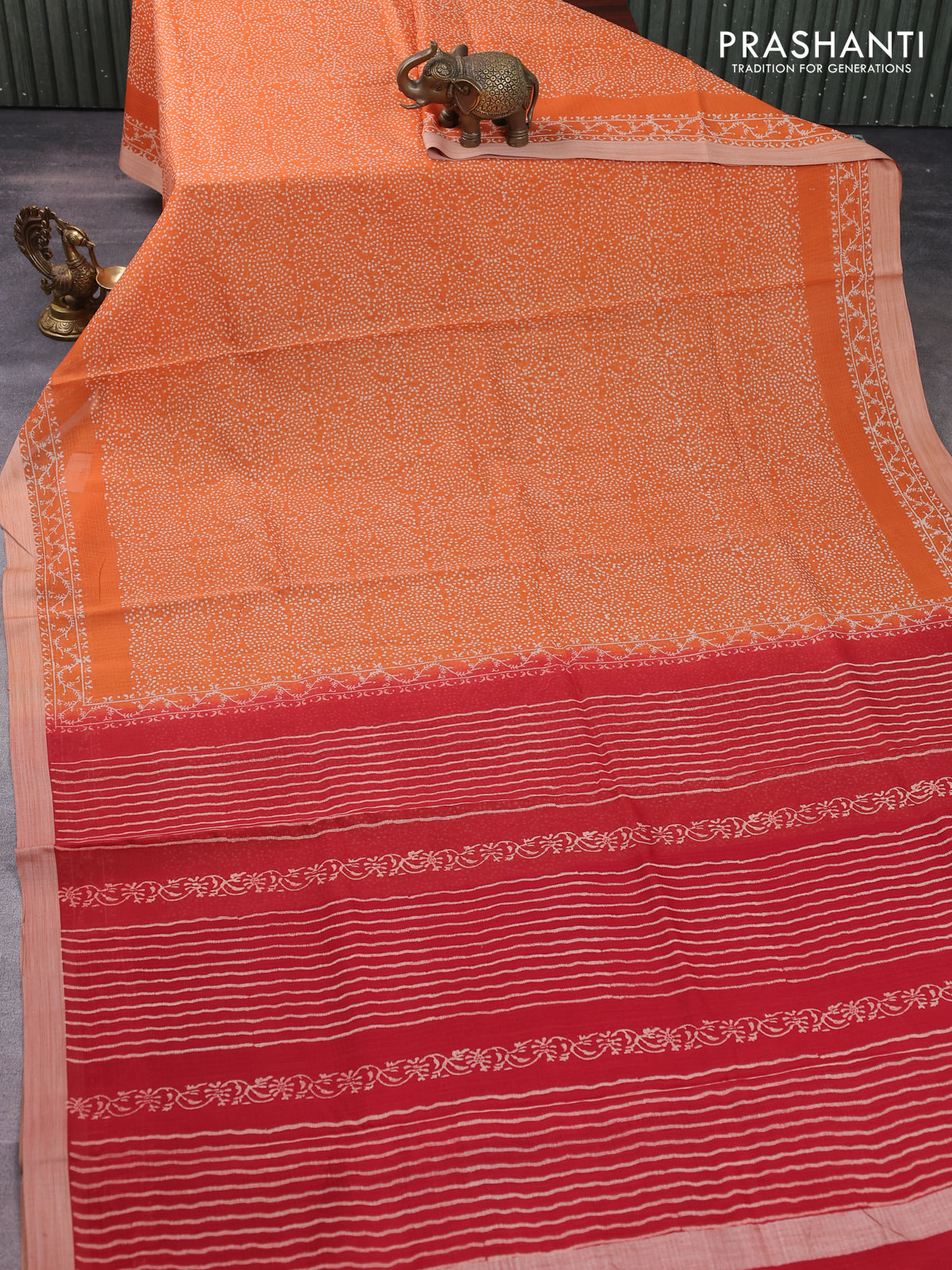 Kota silk cotton saree orange and maroon with allover block prints and printed border