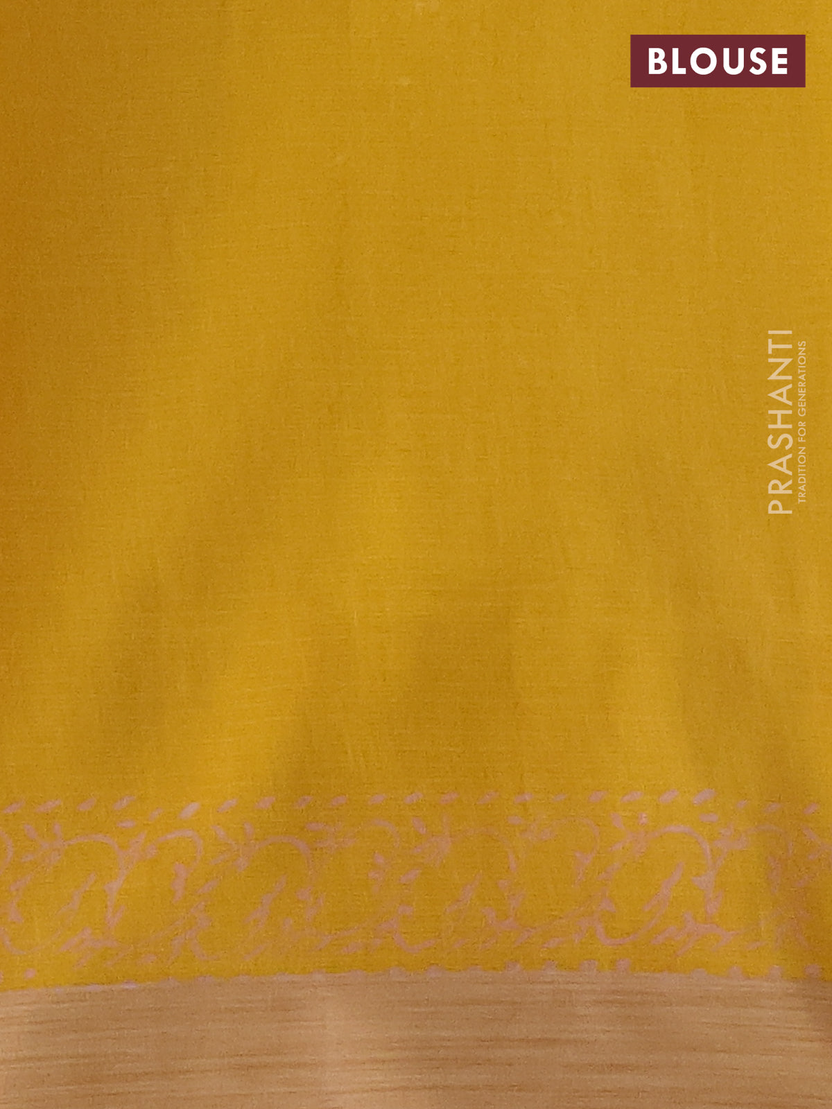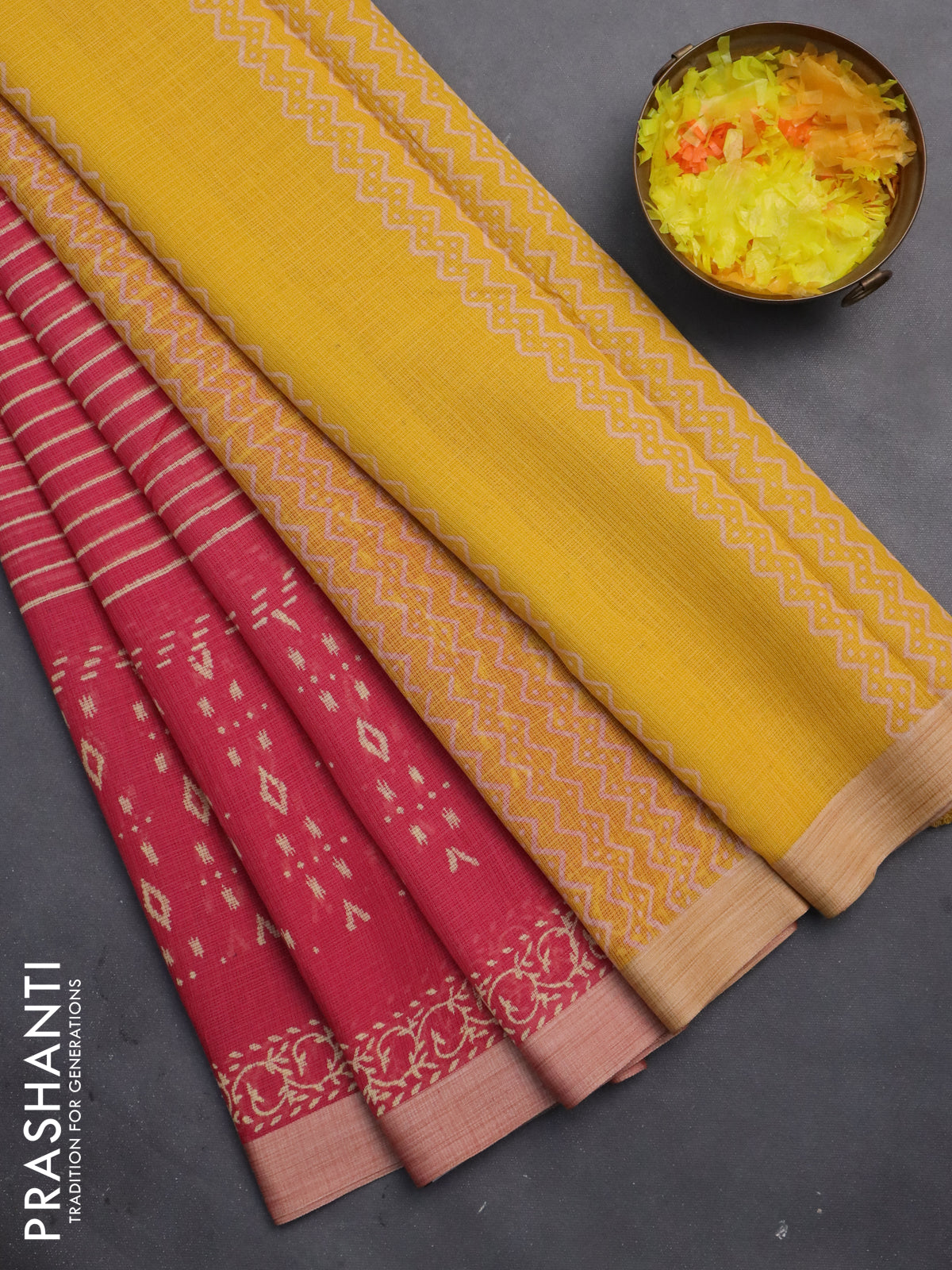 Kota silk cotton saree pink and yellow with allover block prints and long printed border