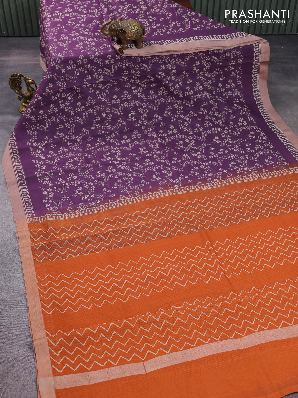 Kota silk cotton saree purple and rust shade with allover block prints and simple border