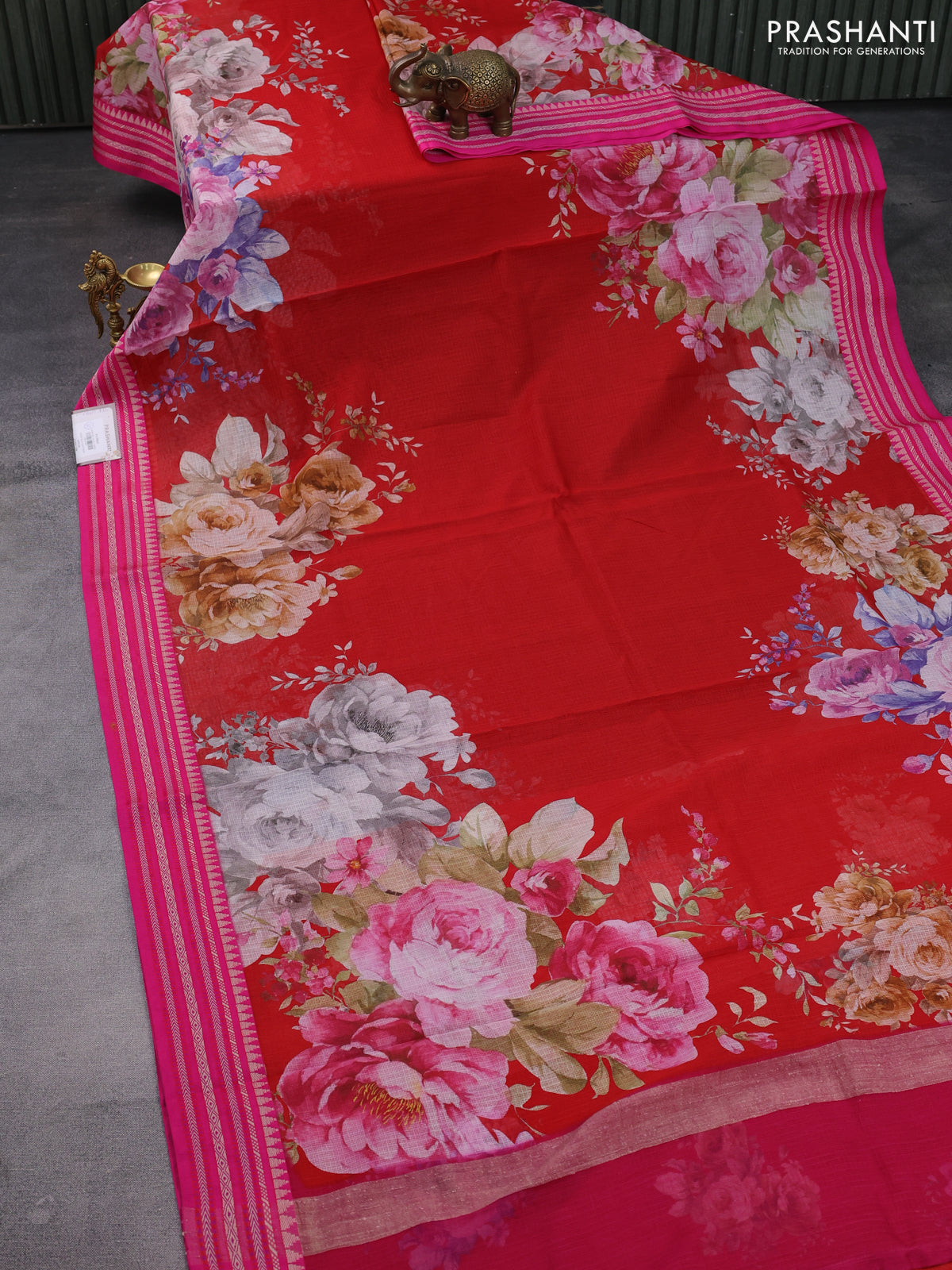 Kota silk cotton saree red and pink with allover floral digital prints and woven border