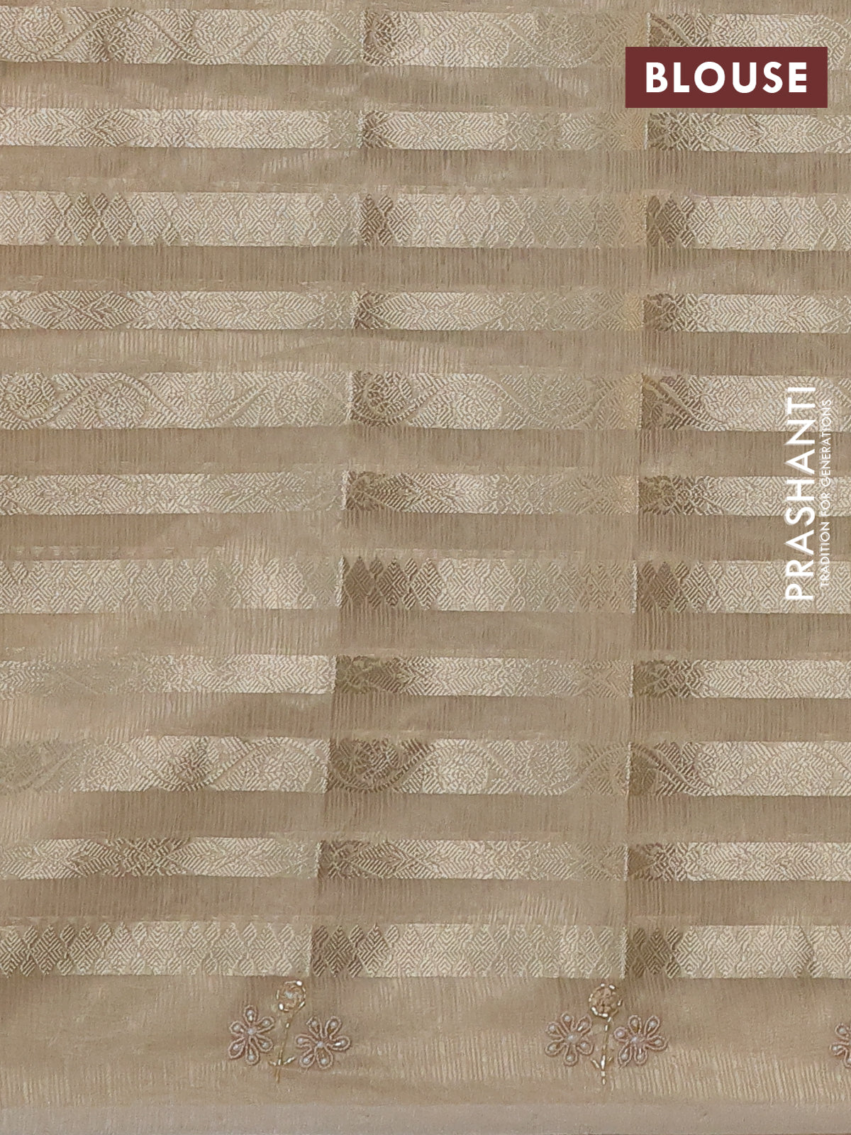 Kota tissue saree beige with allover zari weaves and embroidery butta border