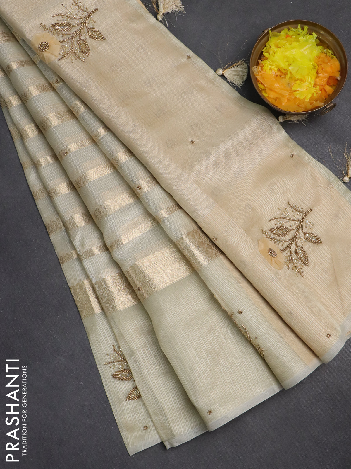 Kota tissue saree beige with allover zari weaves & embroidery buttas and zari woven embroidery butta border