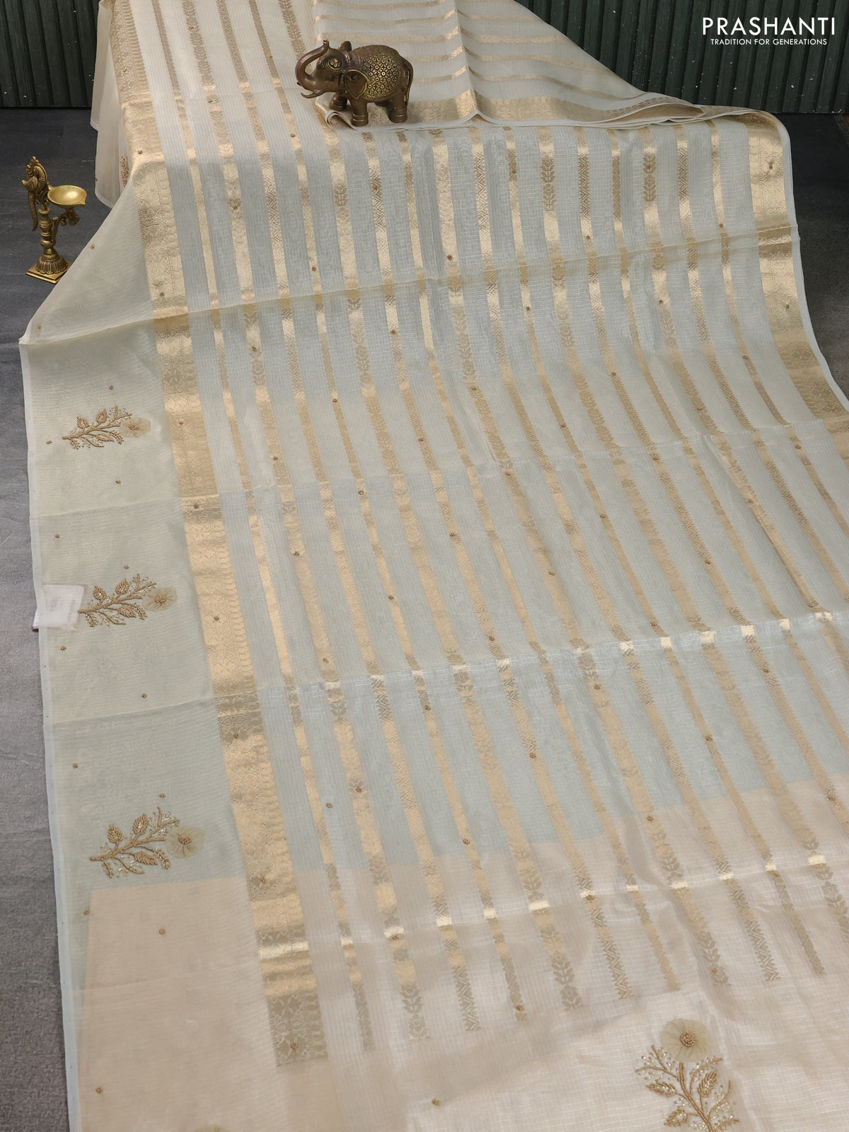 Kota tissue saree beige with allover zari weaves & embroidery buttas and zari woven embroidery butta border