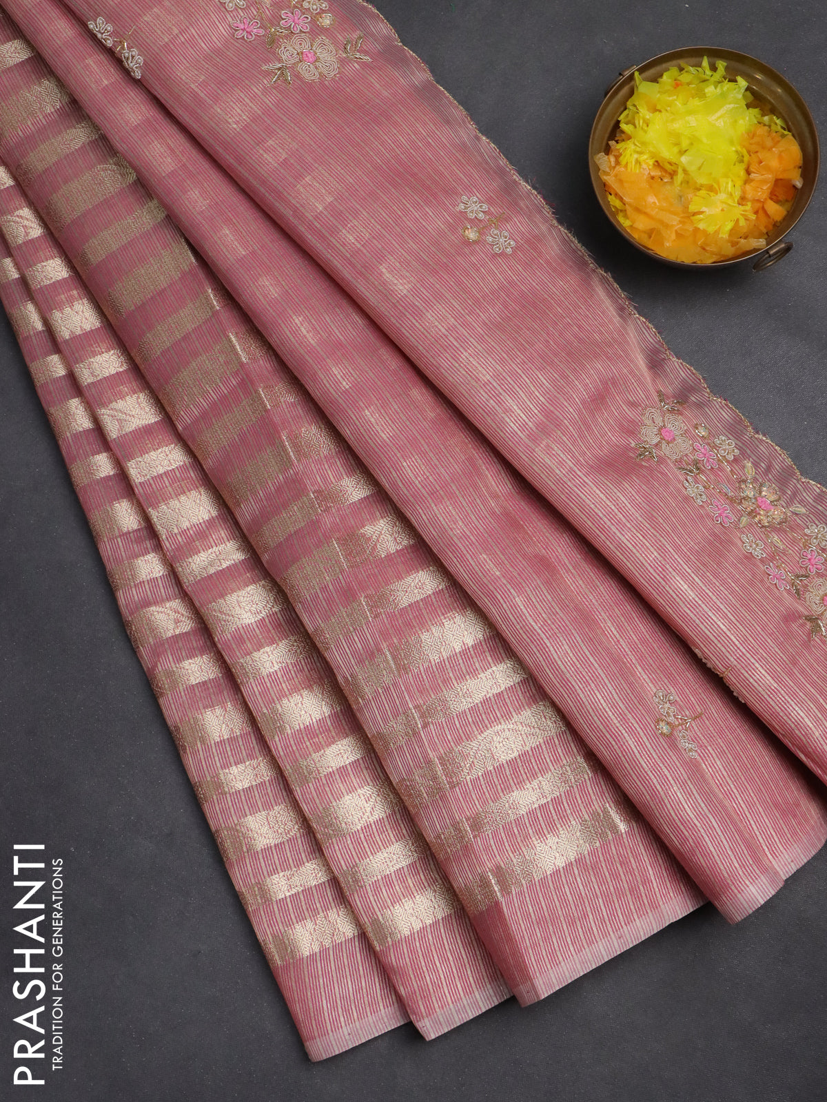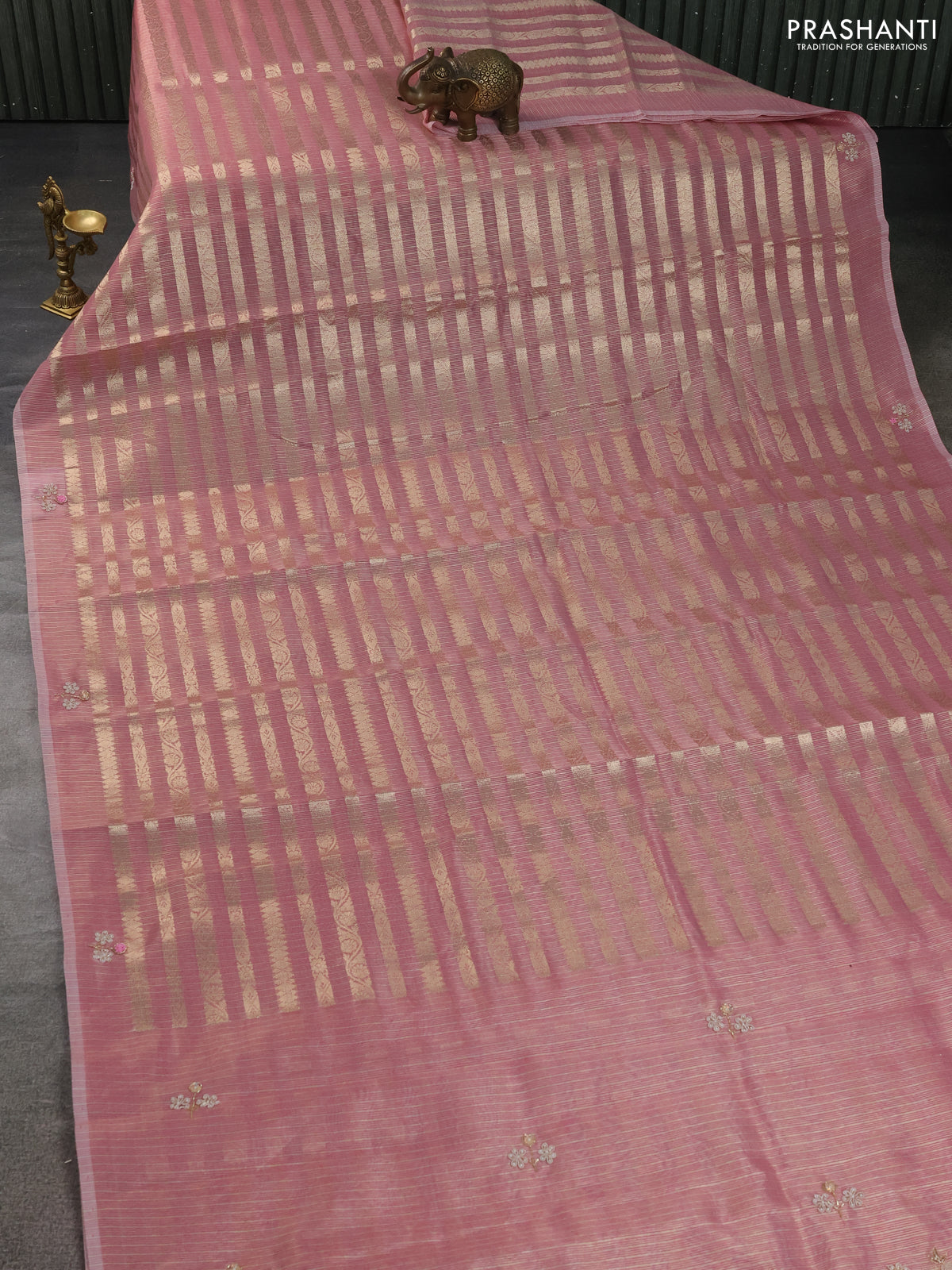 Kota tissue saree light pink with allover zari weaves and embroidery butta border
