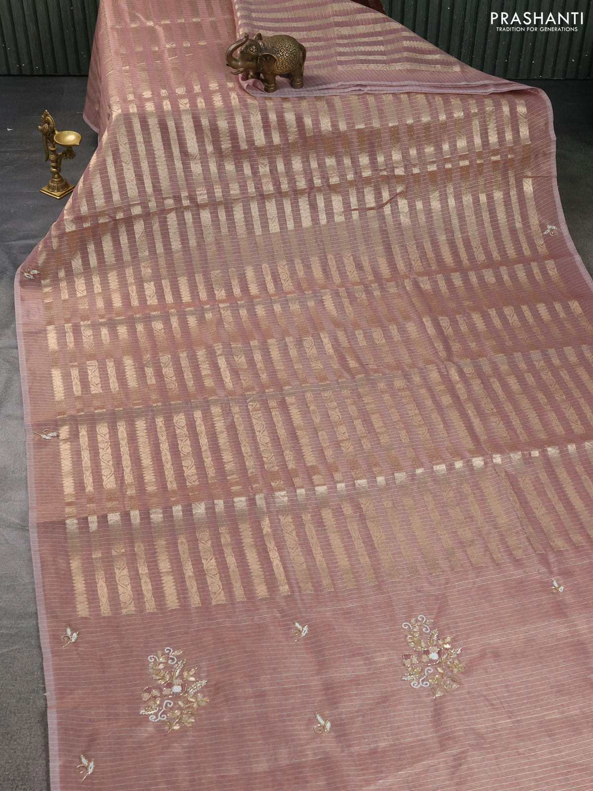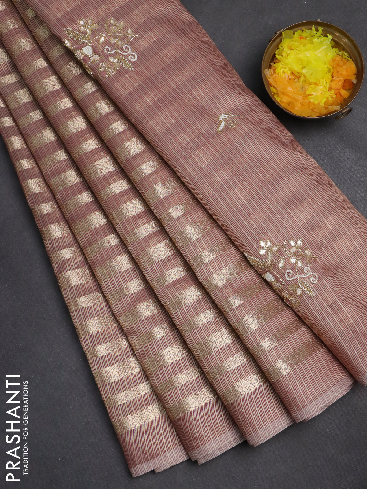 Kota tissue saree pastel maroon with allover zari weaves and embroidery butta border