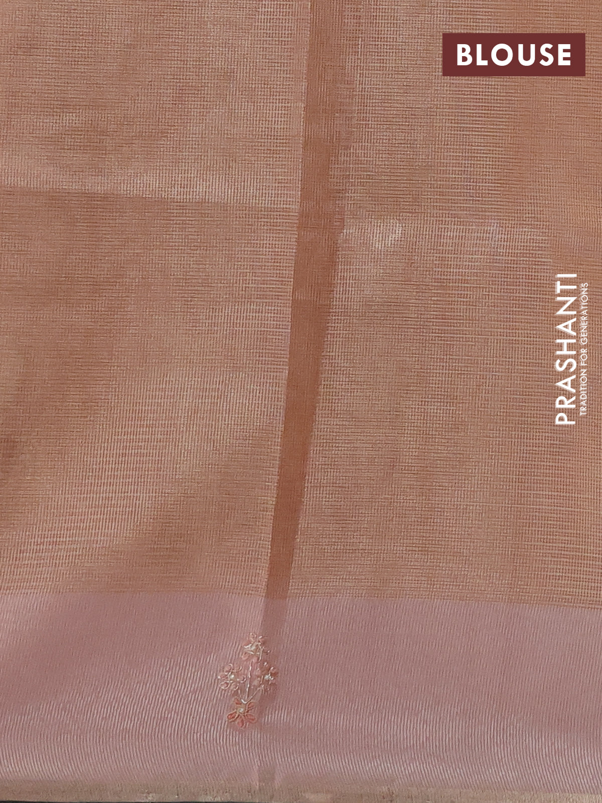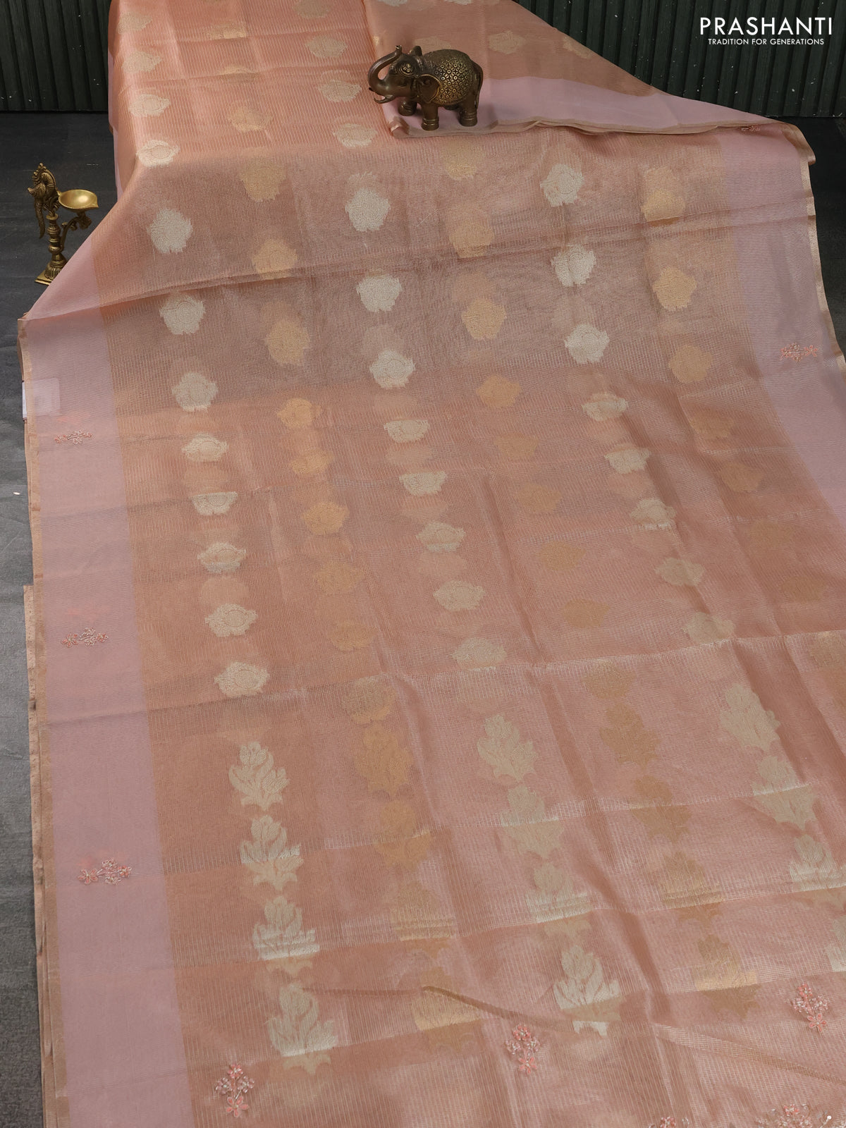 Kota tissue saree peach orange with zari woven buttas and embroidery butta border