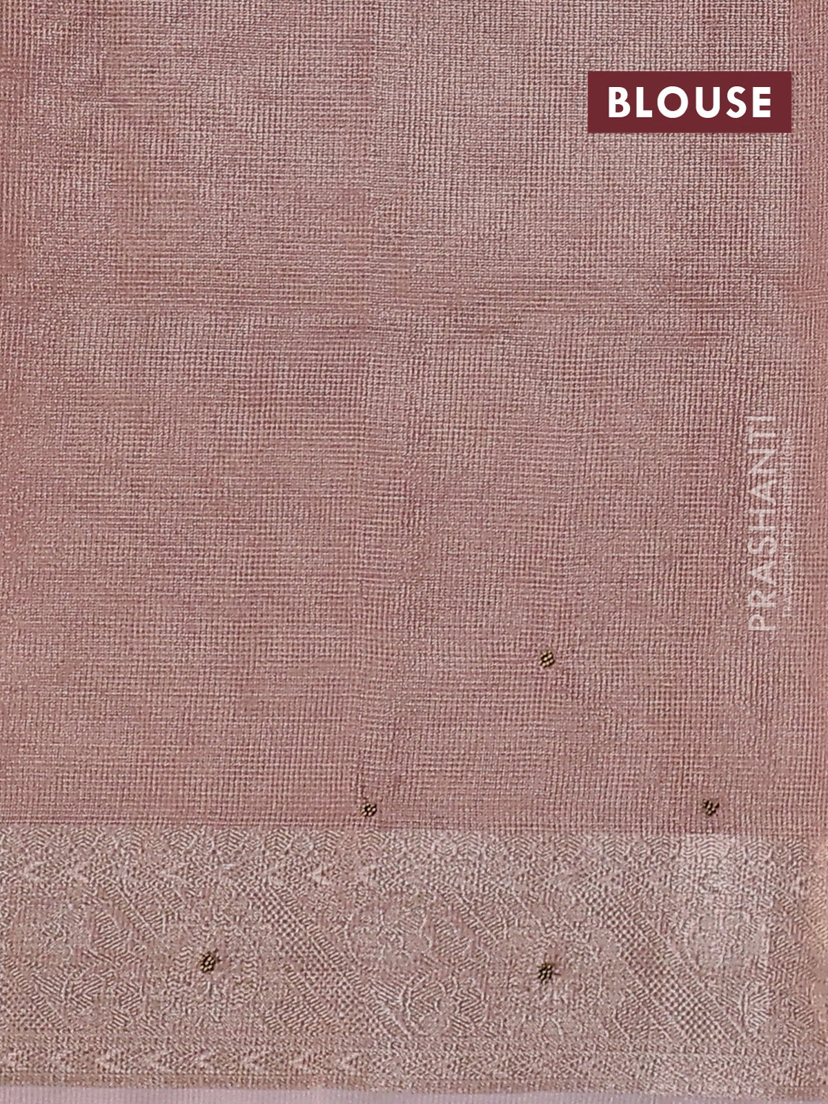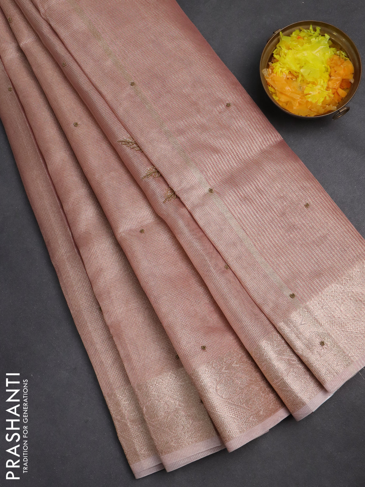 Kota tissue saree peach pink with embroidery buttas and zari woven border