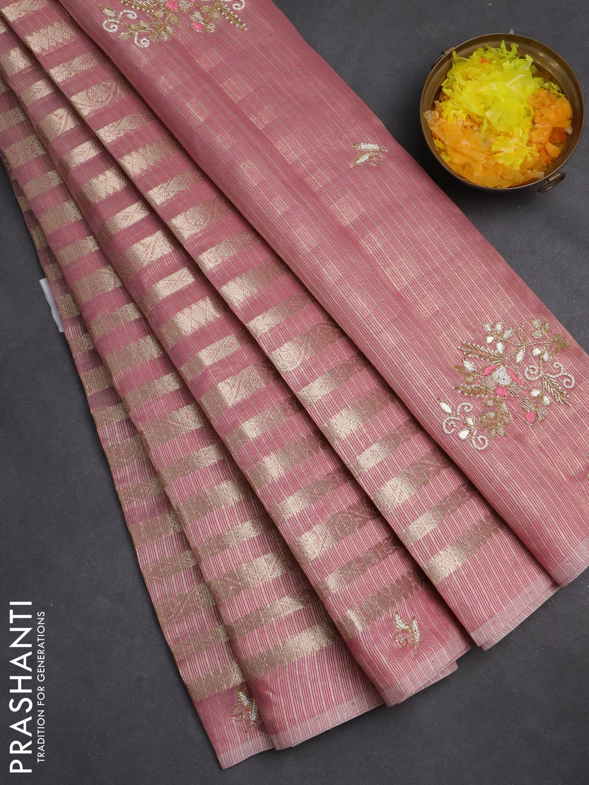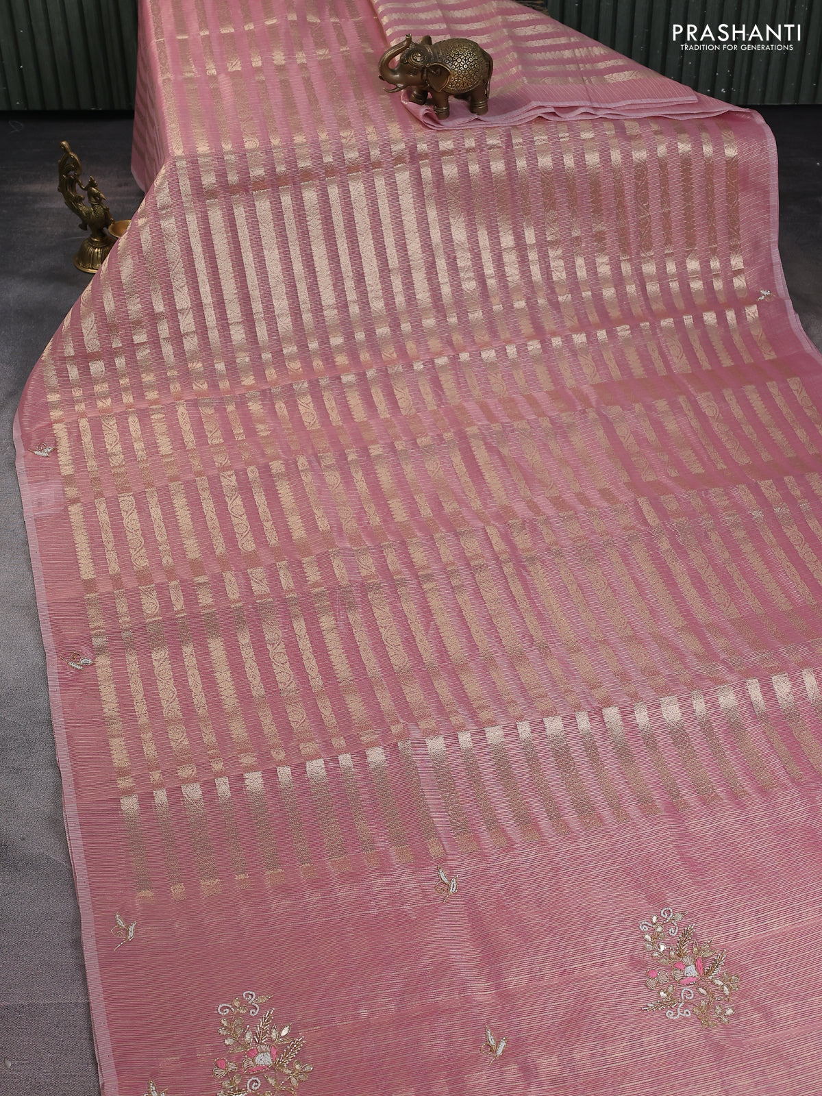 Kota tissue saree pink with allover zari weaves and embroidery butta border