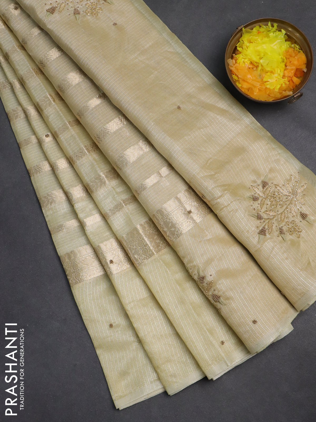 Kota tissue saree sandal with allover zari weaves & embroidery buttas and embroidery butta border