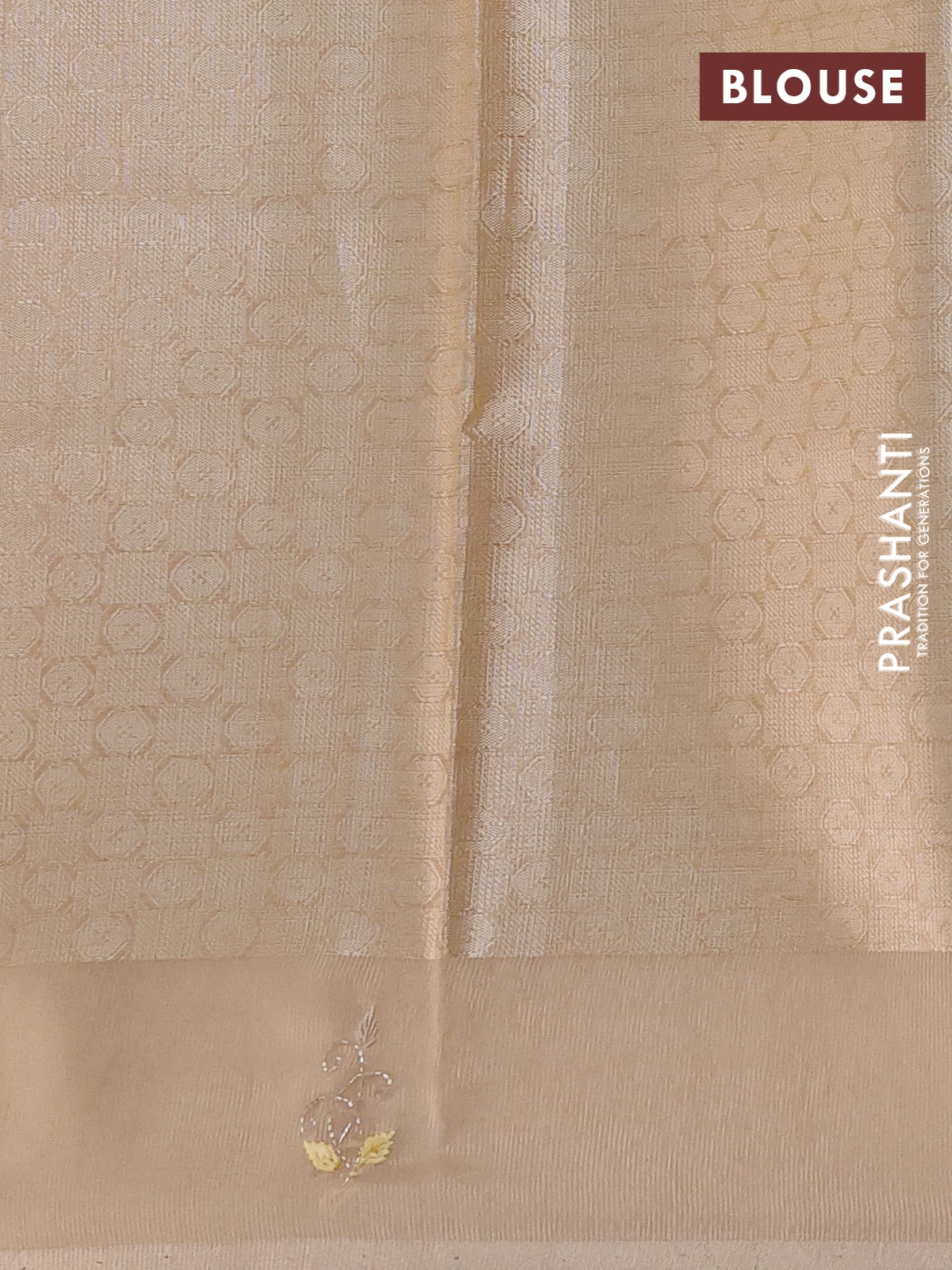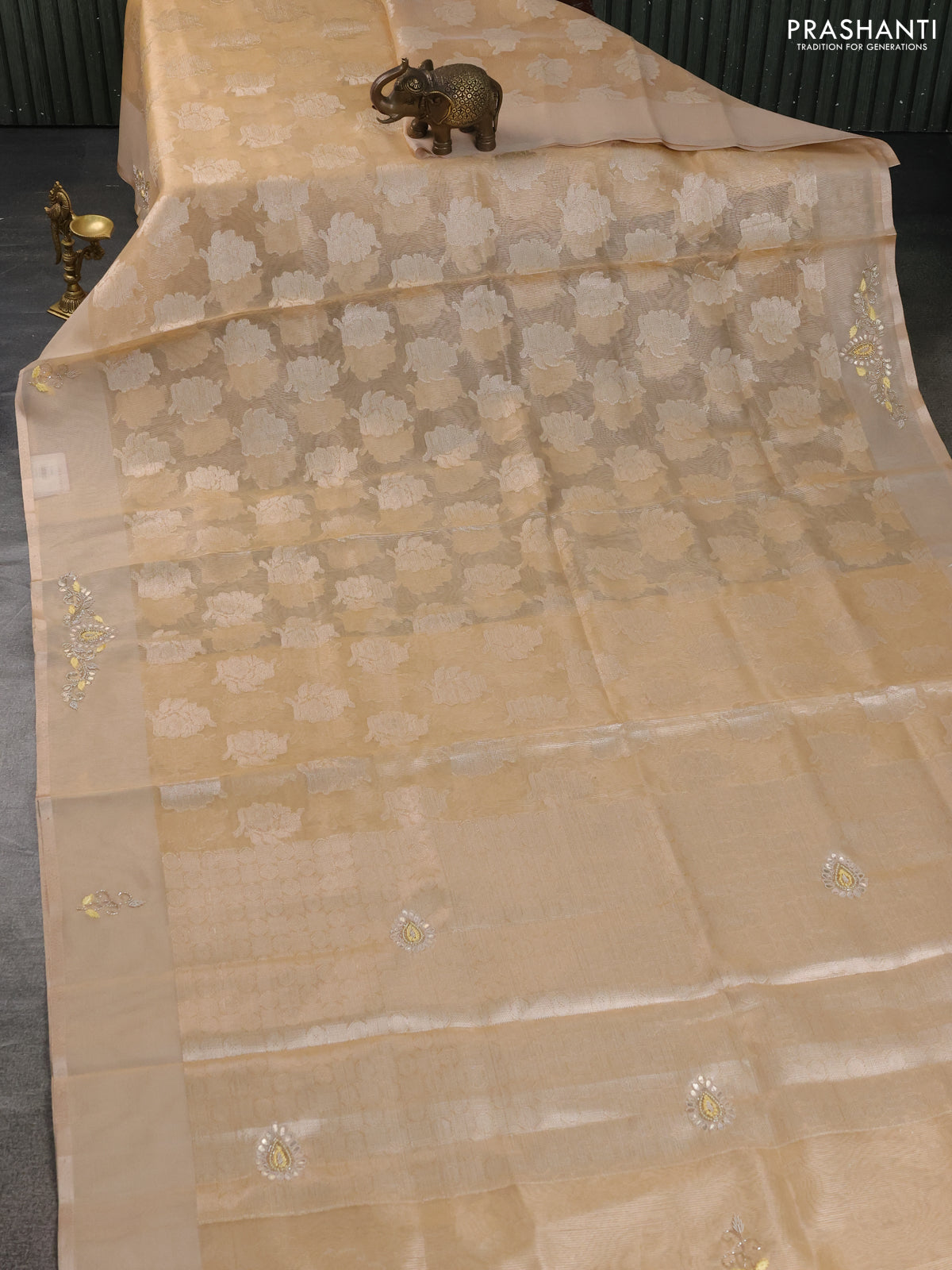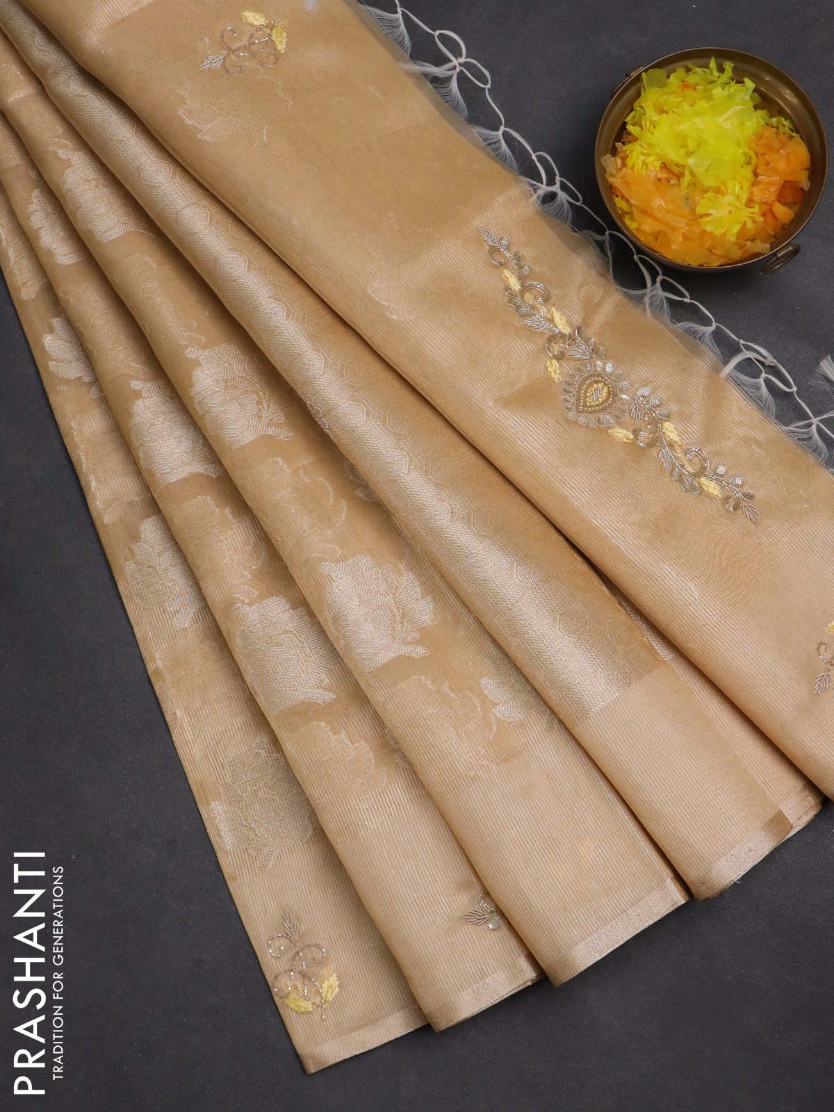 Kota tissue saree sandal with zari woven floral buttas and embroidery butta border