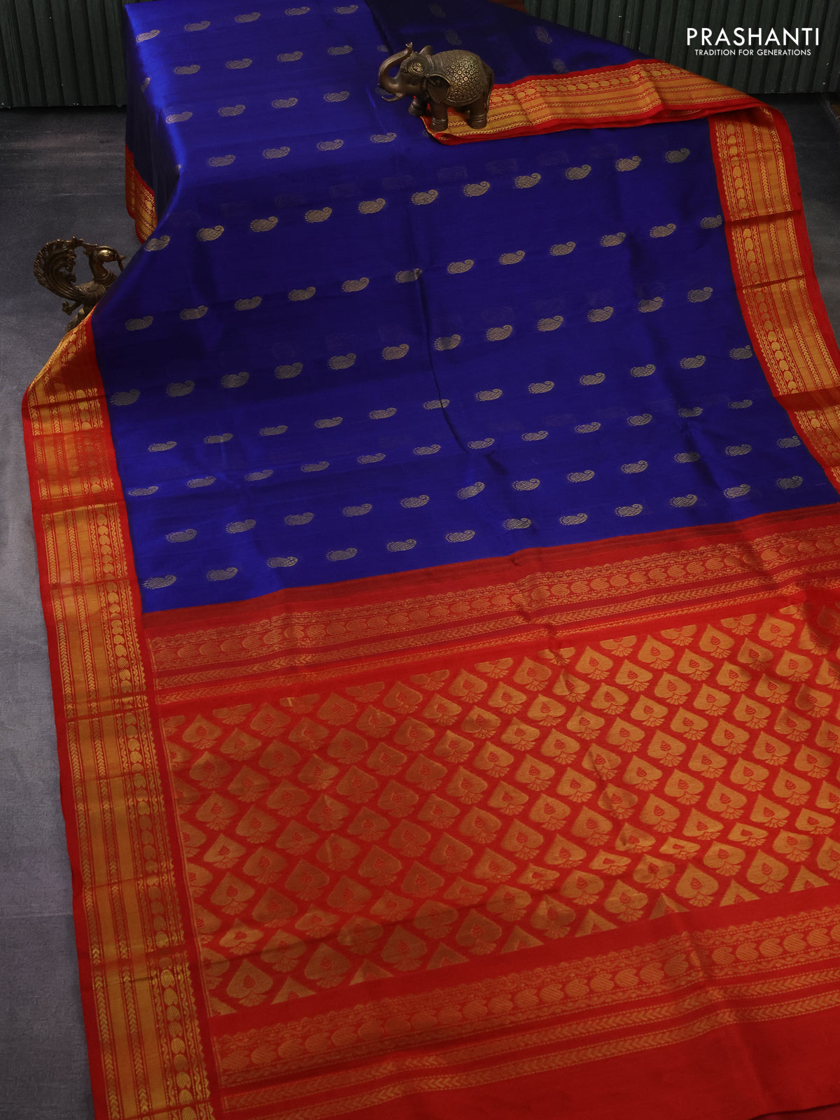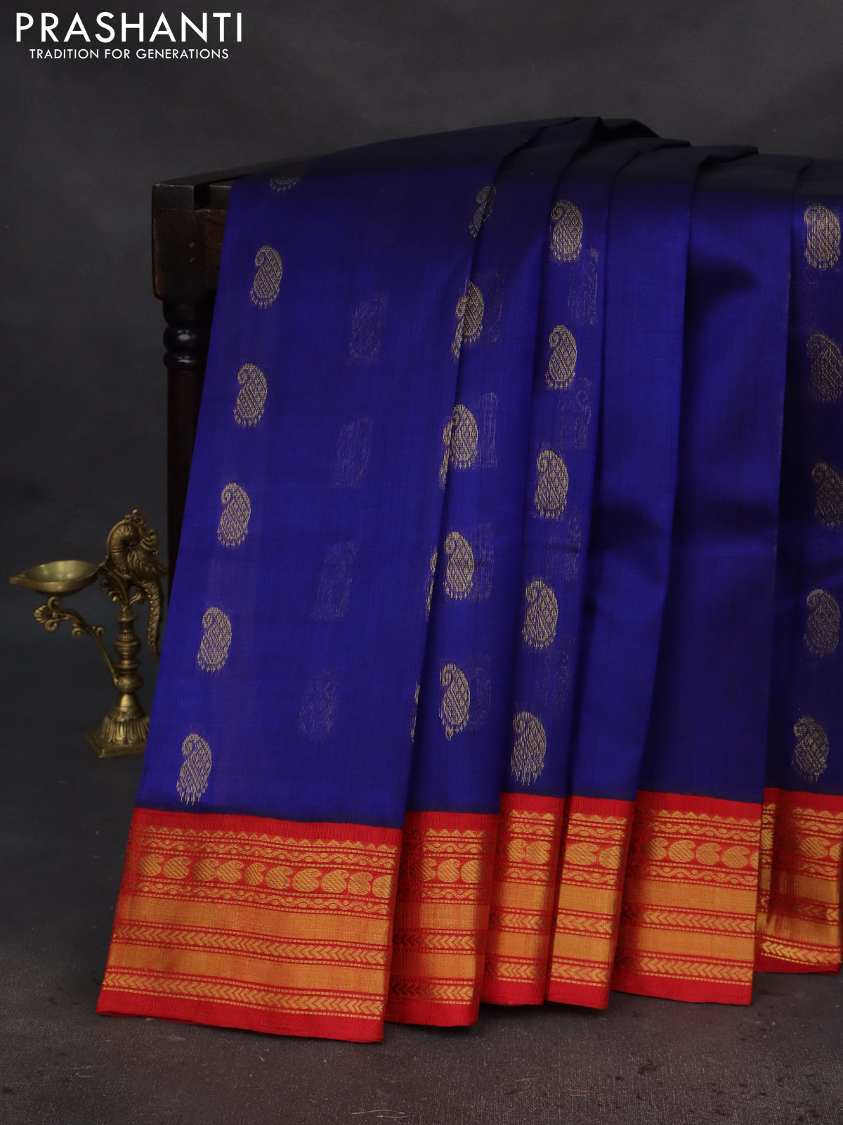 Kuppadam silk cotton saree blue and red with paisley zari woven buttas and zari woven border