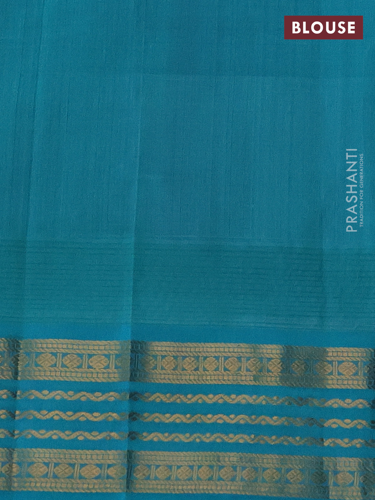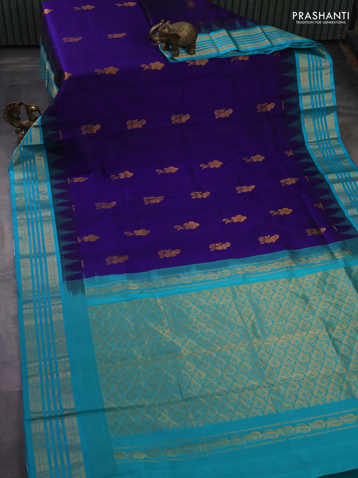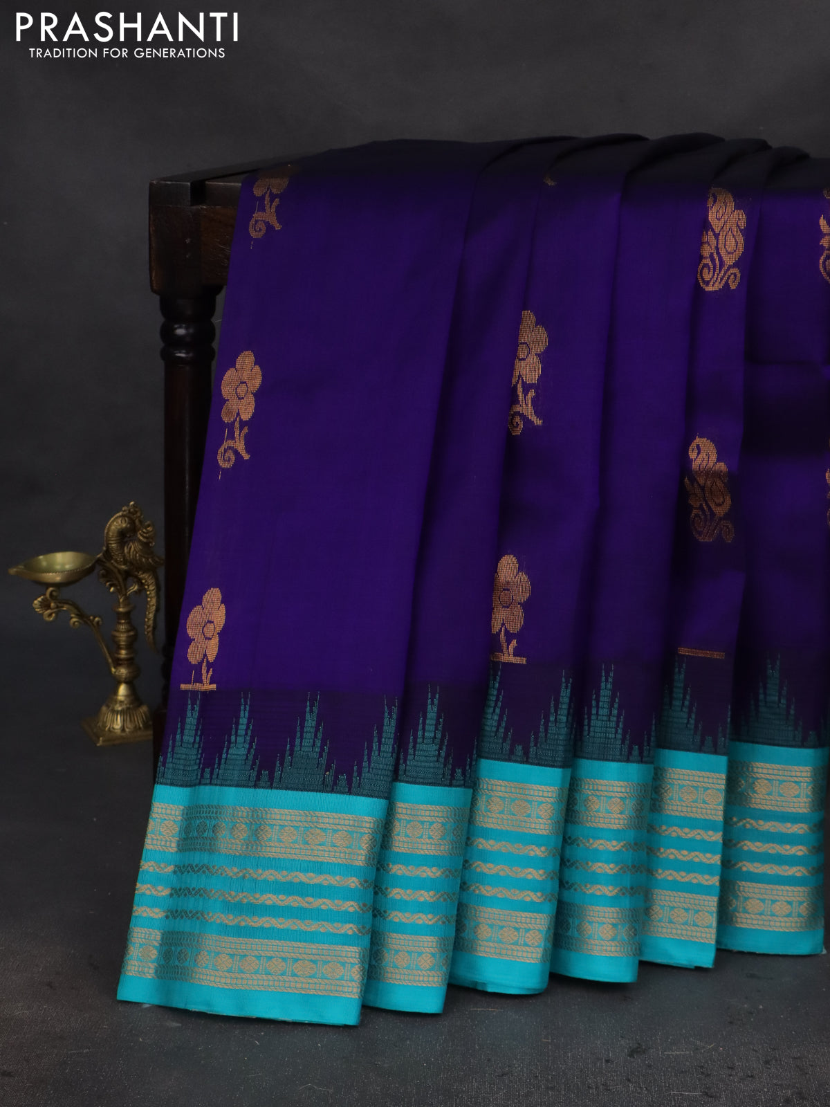 Kuppadam silk cotton saree blue and teal blue with zari woven buttas and temple design zari woven border