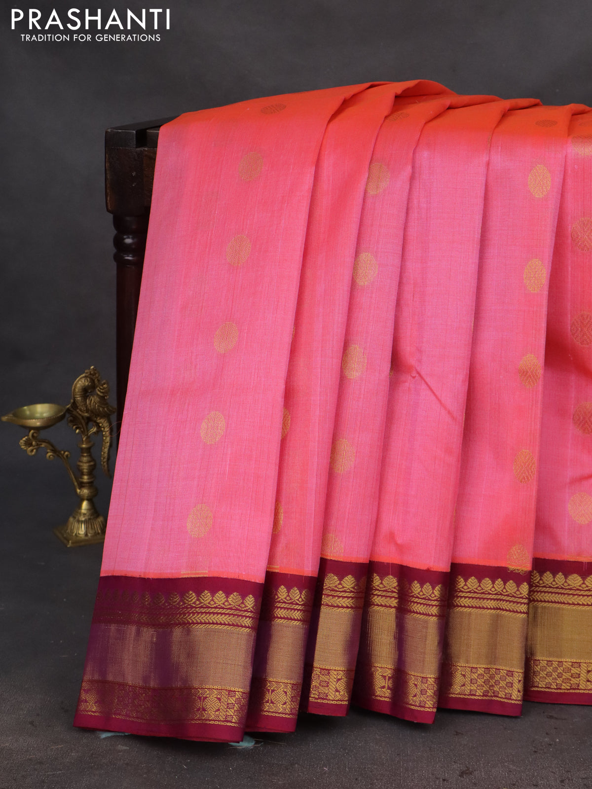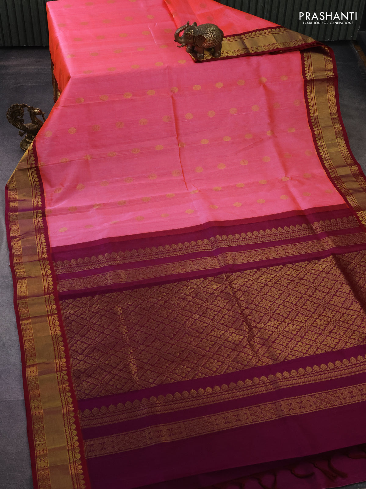 Kuppadam silk cotton saree candy pink and purple with rudhraksha zari woven buttas and zari woven border
