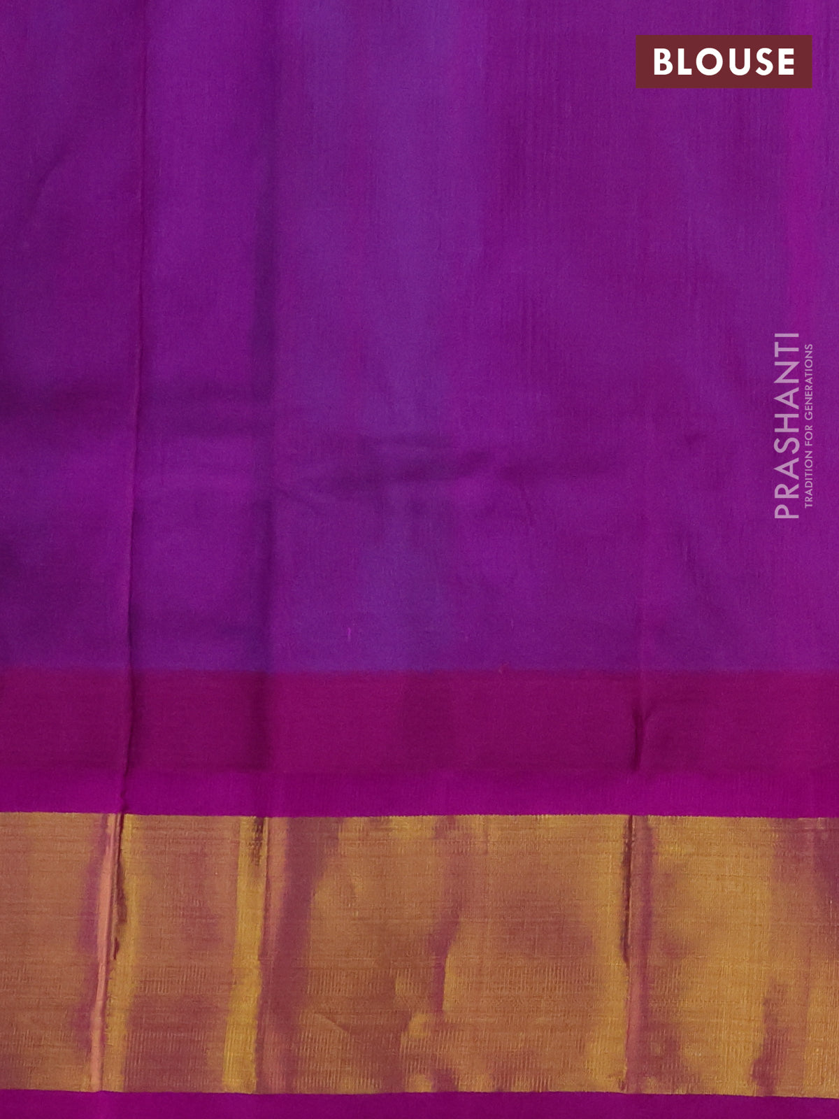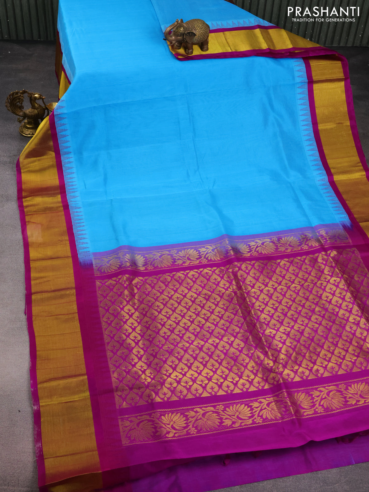 Kuppadam silk cotton saree cs blue and purple with plain body and temple design zari woven border