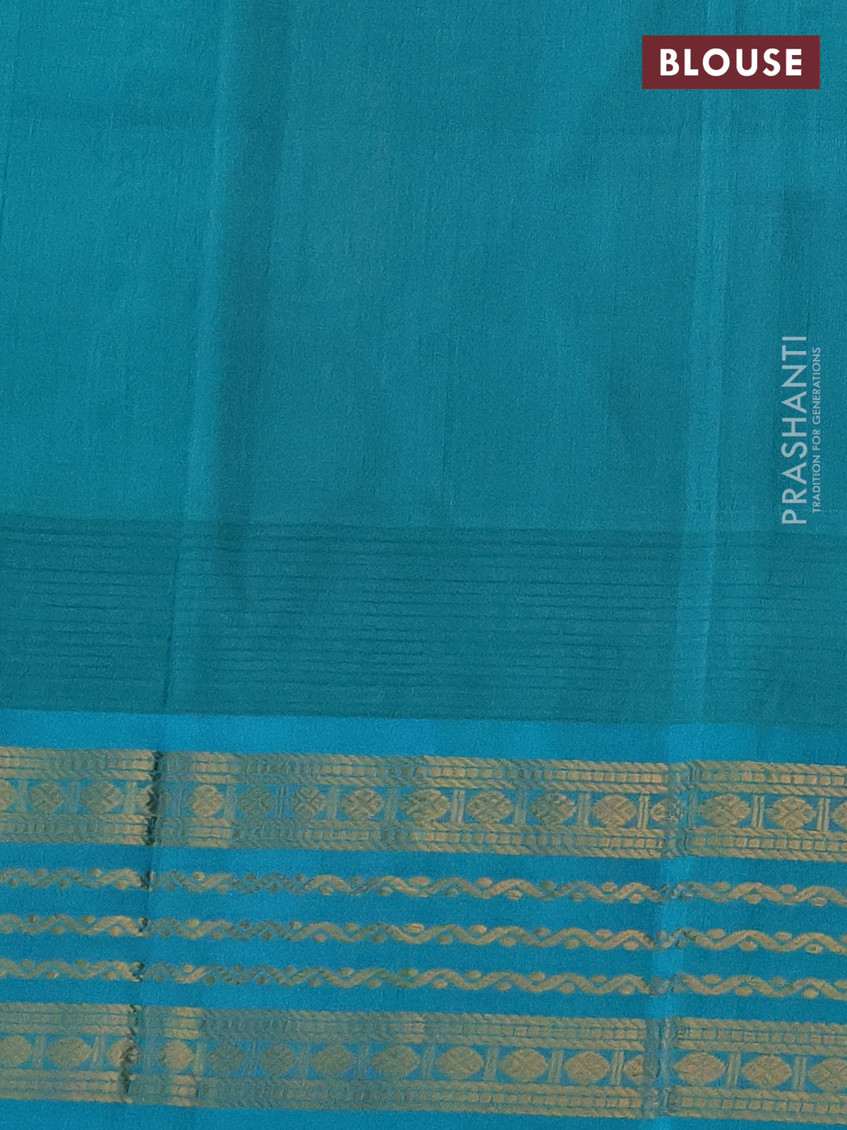 Kuppadam silk cotton saree deep coffee brown and teal blue with zari woven buttas and temple design zari woven border