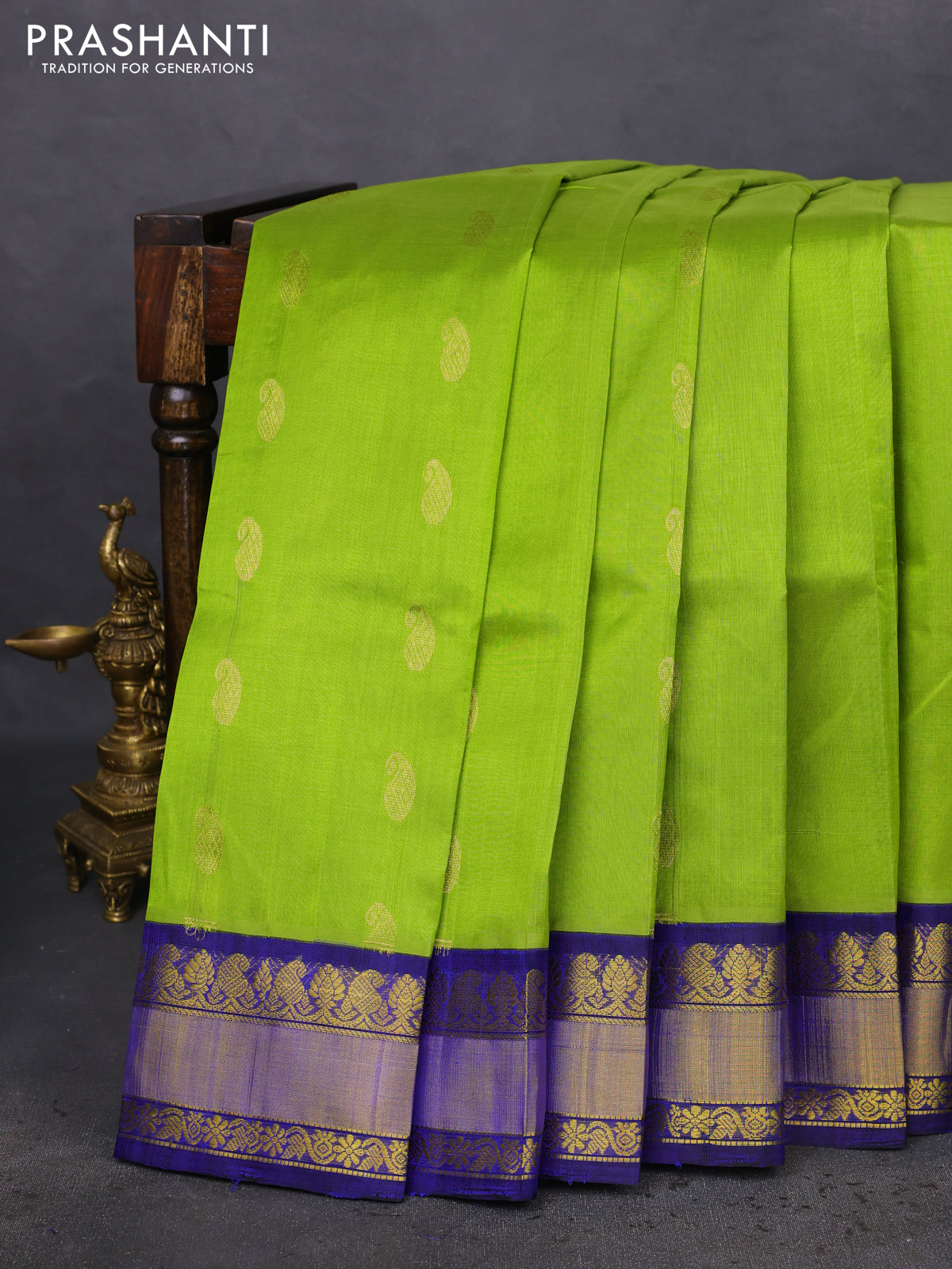 Kuppadam silk cotton saree light green and blue with paisley zari woven buttas and zari woven border