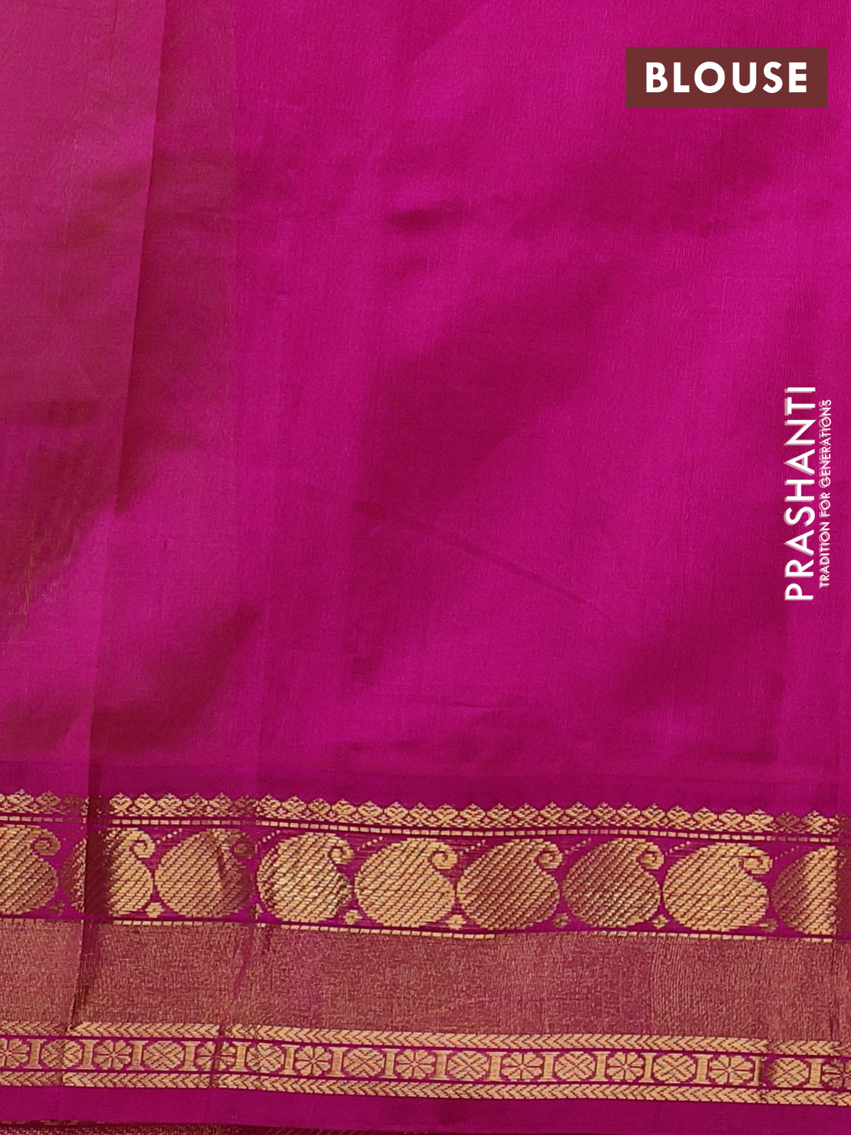 Kuppadam silk cotton saree lime green and pink with plain body and paisley zari woven border