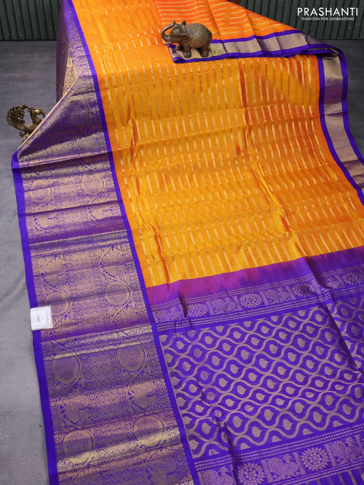 Kuppadam silk cotton saree mango yellow and blue with allover zari woven veldhari pattern and long zari woven border