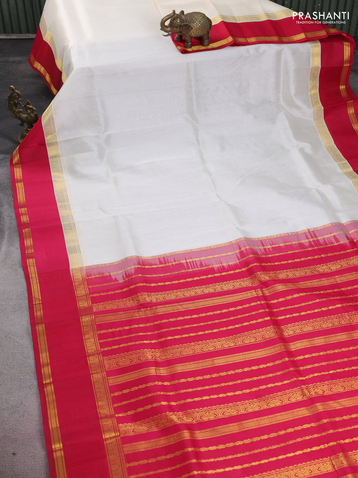 Kuppadam silk cotton saree off white and pink with plain body and rettapet zari woven border